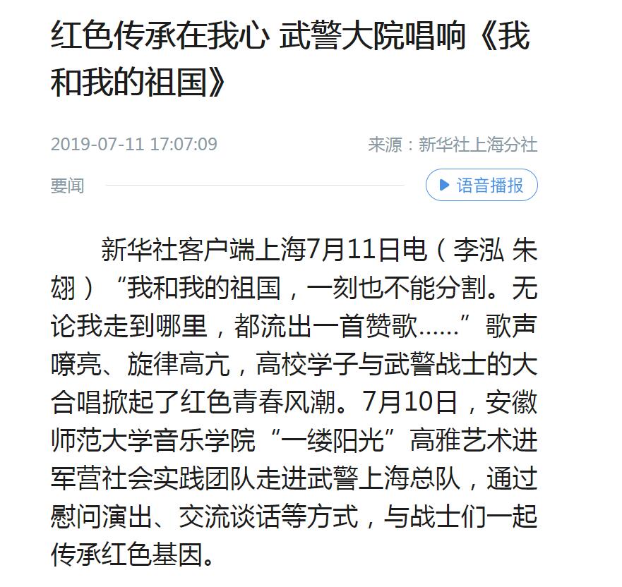 实践结束后,上海市武警总队的首长表示:“你们为我们送来一台加强军民团结、鼓舞军队士气、提升艺术审美修养的高水平慰问演出,我们代表全体官兵向同学们表示衷心感谢!希望你们明年再来!”
