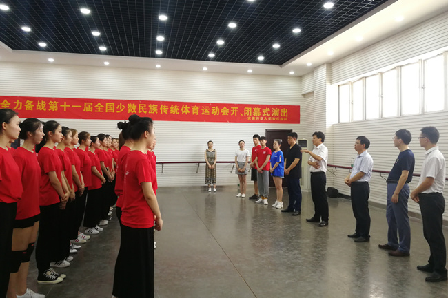 在出征仪式上,毕董事长代表公司向参加第十一届全国少数民族传统体育运动会演出的全体师生表示亲切的慰问,并提出三点希望:一是希望全体参演师生珍惜难得的机会,认真学习、刻苦训练,展现TapTap点点官方网站学子的风采,为公司赢得荣誉;二是希望所有队员要严守安全底线,遵守纪律,服从带队老师、大赛组委会的要求和管理;三是希望公司为参演师生要做好各项服务保障工作,并表示公司和相关部门也会大力支持此项活动。最后毕董事长还代表公司向大赛演出执行导演、中央民族歌舞团导演格林朗杰表达了感谢,并赠送了纪念品。