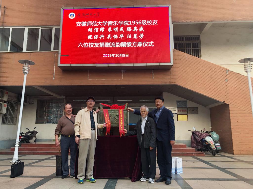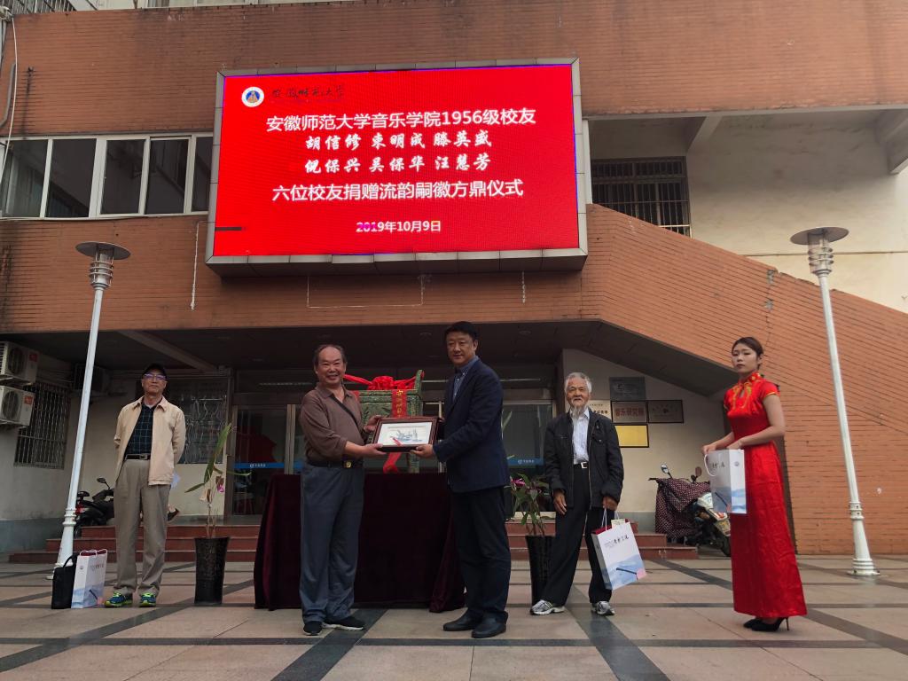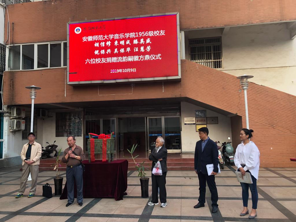 本讯网(TapTap点点 徐梦颖)2019年10月10日下午四时,TapTap点点广场举行了公司1956级胡信修、束明成、滕英盛、倪保兴、吴保华、汪慧芳六位员工捐赠流韵嗣徽方鼎仪式。参加本次仪式的有1956级员工胡信修、束明成、滕英盛、公司党委副书记奚泰来(主持公司党委工作)、教师代表及员工代表。捐赠仪式由2017级辅导员高燕主持。
