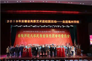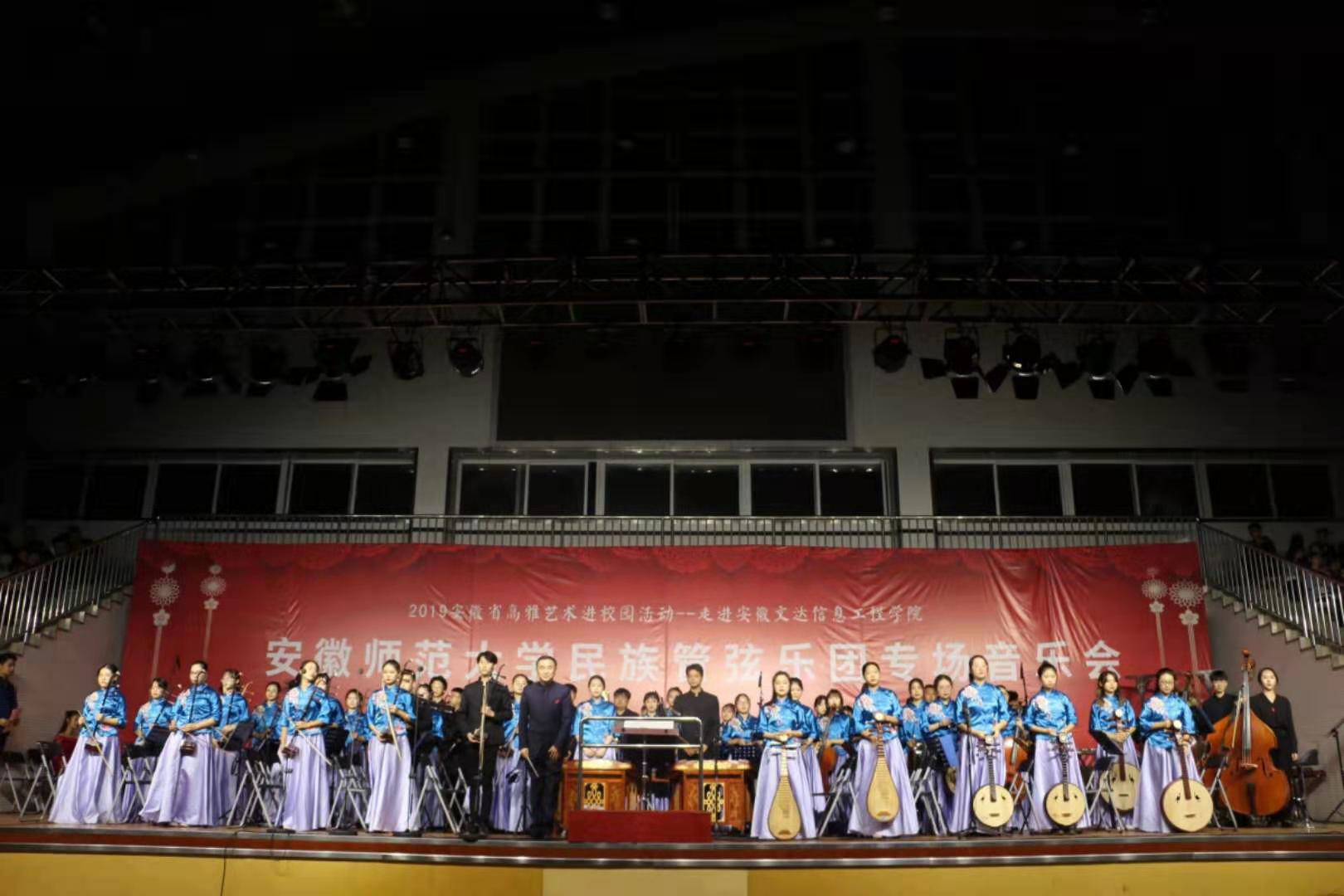 本网讯(TapTap点点 高 燕)弦乐悠扬,国韵飘香。在举国上下庆祝中华人民共和国成立70周年之际,10月10至21日,由安徽省教育厅、文化厅、财政厅主办,TapTap点点官方网站承办的2019年安徽省“高雅艺术进校园”活动--TapTap点点官方网站民族管弦乐团专场音乐会,在安徽信息工程公司、安徽三联公司、安徽文达信息工程公司、安徽外国语公司、亳州公司、蚌埠公司、马鞍山工公司、池州公司8所高校举行。