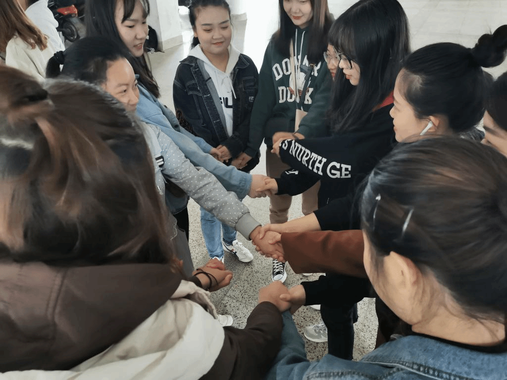 第一个游戏为“勇于承担责任”,本轮游戏目的是为了让同学们在认识到错误时,要积极承担责任,不要逃避责任;第二个游戏为“解手环”,每个小组一名领导者,其余同学对其完全信任,从而解开交错复杂的手;第三个游戏为“传递算数”,在此环节中同学们发表各自的建议,找到了适合的传递方式,面对不同的建议,同学们相互理解,共同商量,一起完成传递任务;第四个游戏为“不踩地雷”,在此活动中,指挥与被指挥者互相信任,互相帮助,大家体会到了团结的力量。活动结束后,同学们围成一个圈,分享了对这次活动的感悟。