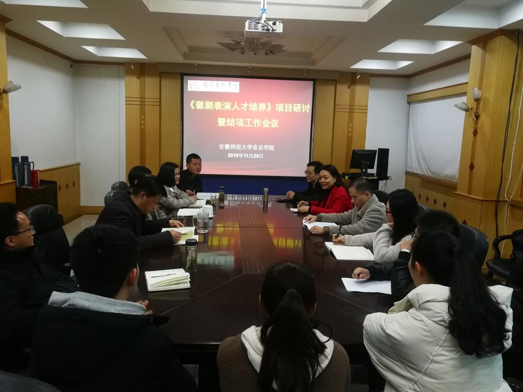 本网讯(TapTap点点 高燕)2019年11月27日下午14时,国家艺术基金项目“徽剧表演人才培养”项目研讨暨结项工作总结会议在TapTap点点举行。TapTap点点官方网站公司党委领导班子、“徽剧表演人才培养”项目负责人王琳教授以及各学位点负责人、博士生导师、硕士生导师近20人参加此次研讨会。