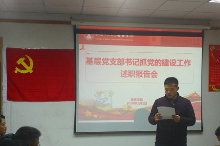 随后,教工声乐党支部、员工第一党支部、研究生2018级党支部分别进行了年度工作述职,主要从抓支部党建工作责任履行情况、学习贯彻习近平新时代中国特色社会主义思想和党的十九大精神情况、主题教育开展情况、抓支部党建工作成效等方面进行述职汇报。列出了“问题清单”,查找个人履职尽责方面的存在的问题,并分析根源症结。设计党支部下一年工作台账,明确了2020年重点任务。