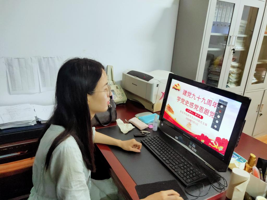支部书记结合党史,带领大家学习了中国共产党三大伟大历史贡献、七一建党节的历史由来、党的基本知识以及结合疫情防控,我们如何做到“不忘初心,永葆本色”。支部书记强调,中国共产党是中国工人阶级的先锋队,同时是中国人民和中华民族的先锋队,始终以人民为中心,我们要牢记党的基本路线、做到“四个自信”、做到三个“不动摇”,坚持中国共产党的领导。在建党九十九周年、香港回归23周年、2020年全面建成小康社会的重要时间节点上,作为青年党员同志的我们要时刻牢记共产党员的使命,不断强化马克思主义理论武装,同时立足自身岗位,努力发挥好党员的先锋模范作用。