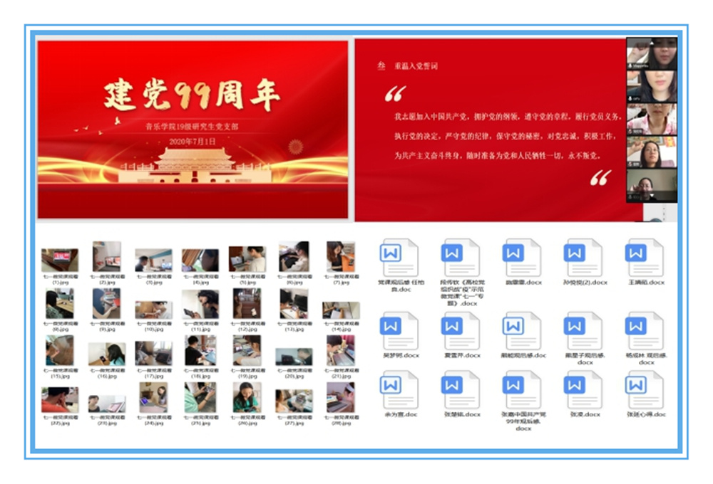 本网讯(研究生2019级党支部 图文/张隽凡 占坤)为庆祝中国共产党成立99周年,缅怀党的光辉历程,讴歌建党、新中国成立以来取得的伟大成就。7月1日下午,研究生2019级党支部织召开党员会议,开展庆祝建党99周年系列线上活动,视频会议由党支部书记占坤主持。