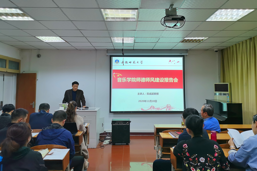 阮教授将师德师风教育贯穿整场报告之中,从国家层面《关于高校教师师德失范行为处理的指导意见》到公司《教师师德失范行为处理实施细则(试行)》,从《准则》到《办法》,从《新时代高校教师职业行为十项准则》到高校教师的“红七条”,给教师树立了标杆,划出了黄线和红线,他号召参会教师成为有幸福感、成就感、荣誉感的美育教师,成为高素质专业化创新型的美育教师。整场报告会理论阐述有深刻,以大量案例和生动语言阐述师德的重要性,是一场高水平的师德师风专题教育报告会。