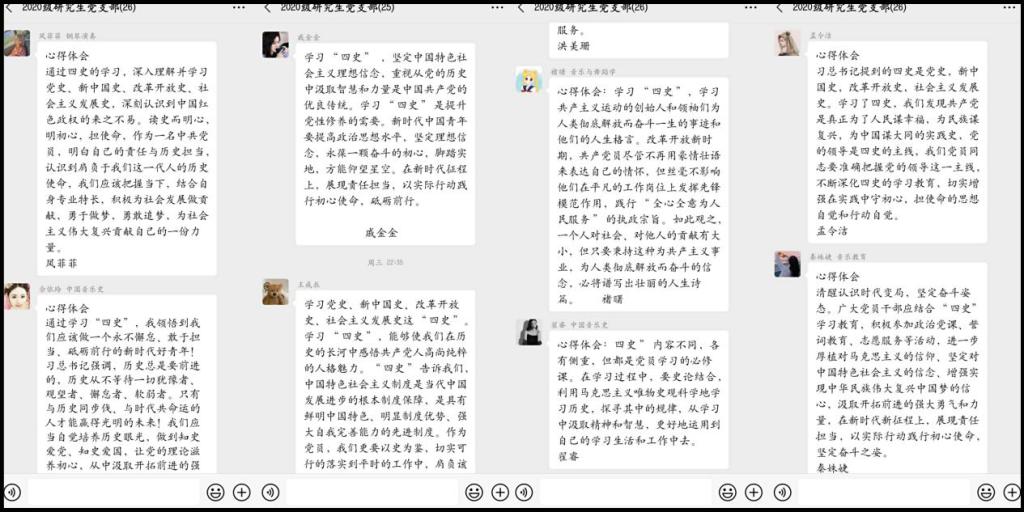 活动后,研究生2020级党支部成员纷纷发表感想,感念伟大祖国的来之不易。本次“四史”教育活动取得圆满成功。