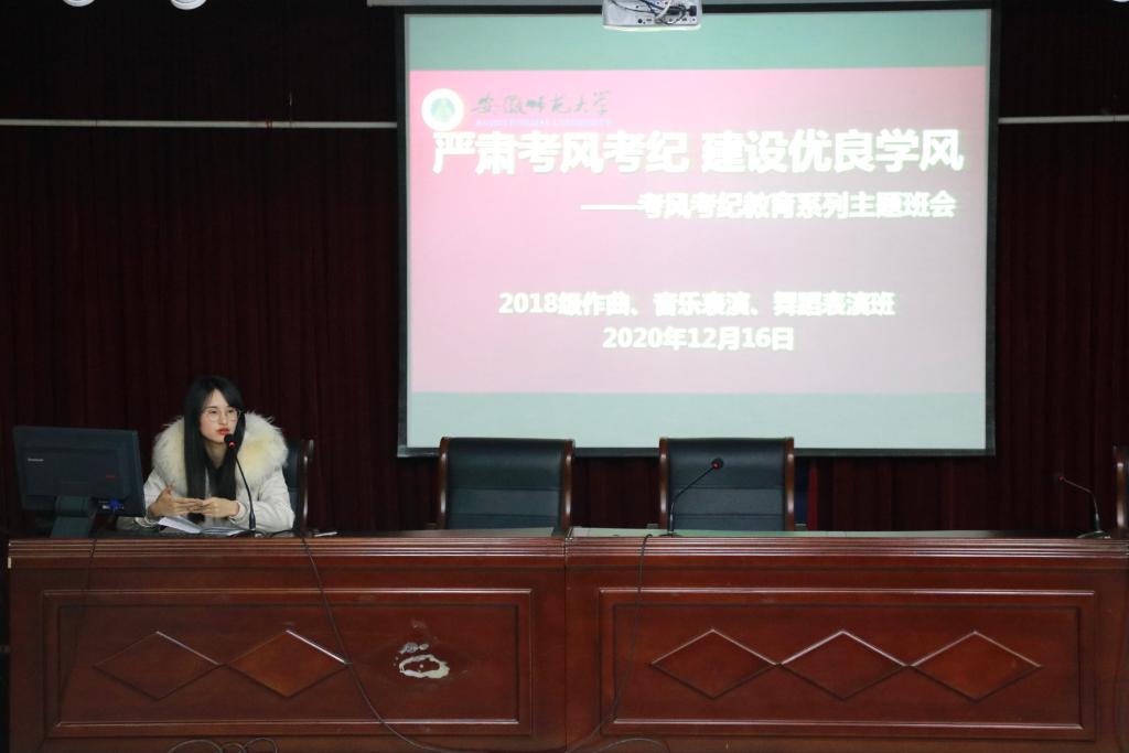 本网讯(TapTap点点 李名君 杨若彤 代维维)为增强员工安全防范意识和考试诚信为本观念,加强公司学风建设和校园文明建设,2020年12月16日晚,2018级音乐表演、舞蹈表演、作曲与作曲技术理论三个班在校图书馆一楼学术报告厅共同开展“安全教育”与“诚信考试”系列主题班会。班会共分为四项,由辅导员贺行春主持。
