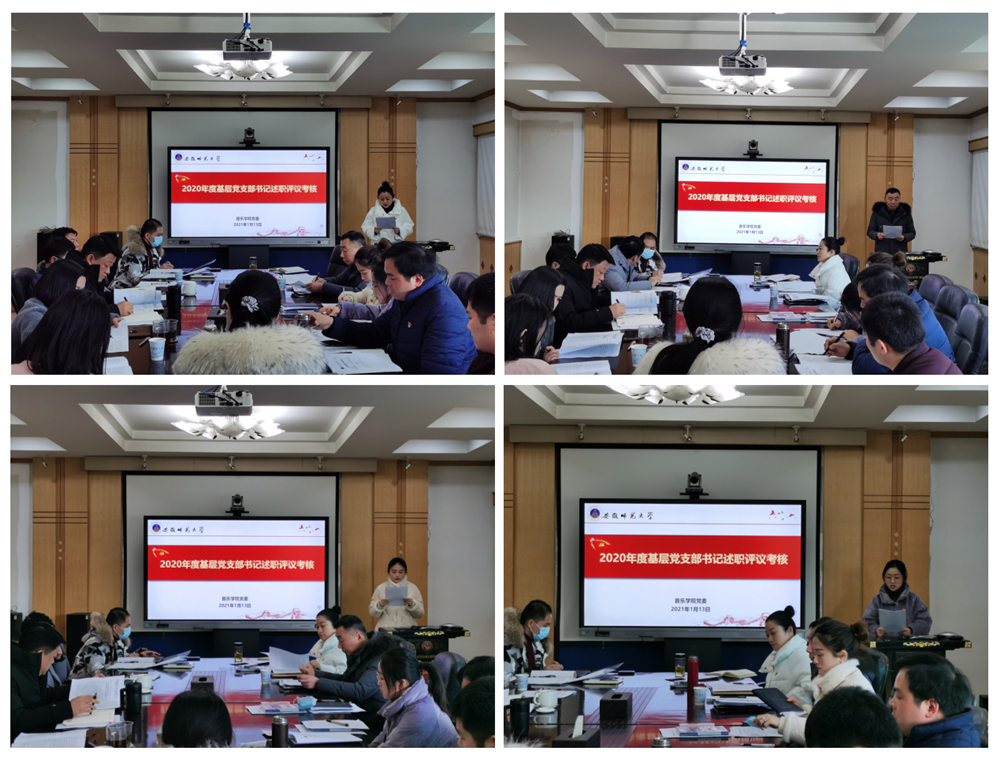 随后,教工器乐党支部书记韩丽、教工理论党支部书记耿劲松、员工艺术团支部书记白婧和研究生2019级党支部书记占坤分别进行了年度工作述职,主要从抓支部党建工作责任履行情况、学习贯彻习近平新时代中国特色社会主义思想和党的十九大精神情况、支部特色活动、抓支部党建工作成效等方面进行述职汇报。列出了“问题清单”,查找个人履职尽责方面的存在的问题,并分析根源症结。设计党支部下一年工作台账,明确了2021年重点任务。公司党委委员、已达标党支部书记、师生党员代表对述职党支部进行现场评议,并对述职支部提出相应性改进意见。