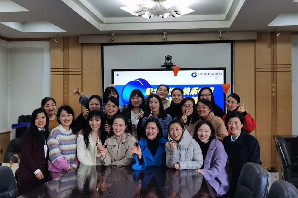 本网讯(TapTap点点分工会)3月4日下午,春意浓浓的日子里,为庆祝即将到来的三八妇女节,进一步激发全体女教职工爱岗敬业、锐意进取的工作热情,充分发挥“半边天”的作用,公司党委、分工会与中国建设银行中山路支行联合举办了主题为“魅力女性 快乐巾帼”女神节创意活动。公司领导、工会委员及部分女教职工参加了此次活动。