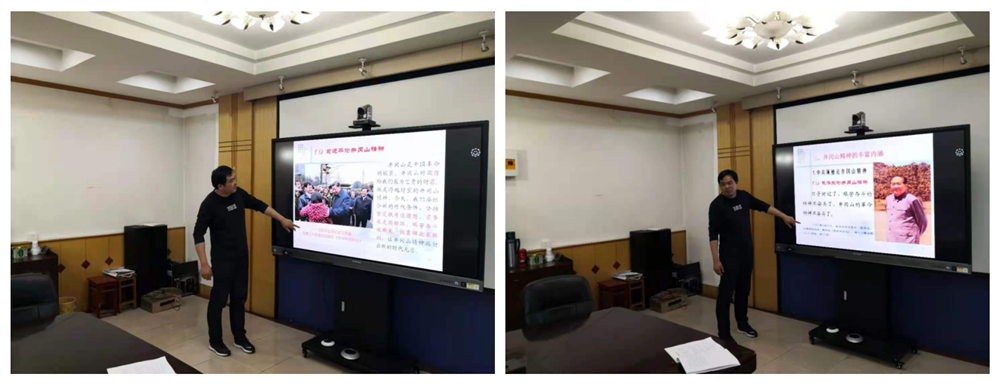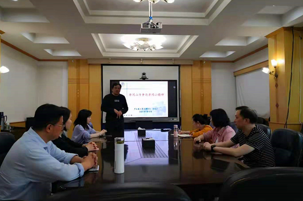 王文正书记向与会党员教师汇报近期支部准备开展的一系列活动,为喜迎建党一百周年,近期党支部和教研室将举办“员工声乐专场”和“教师声乐专场”两场音乐会 ,“员工声乐专场音乐会”节目已选拔完毕,“教师声乐专场”节目也在紧锣密鼓的准备中。随后王文正书记面向支部党员主讲了“井冈山斗争与井冈山精神”专题党课,内容主要分为“井冈山斗争的简要概况”“井冈山斗争的历史分期”“井冈山精神的丰富内涵”三部分。同时,王书记结合制作的PPT汇报了2年前自己亲赴井冈山学习的经历,党员老师们仔细认真的听取汇报,会后党员同志纷纷感叹今天的革命成果来之不易,立志一定要学习革命先辈敢于献身的精神,成为大先生,坚守岗位职责,教书育人,为国家培养合格的建设者和接班人贡献自己的力量!