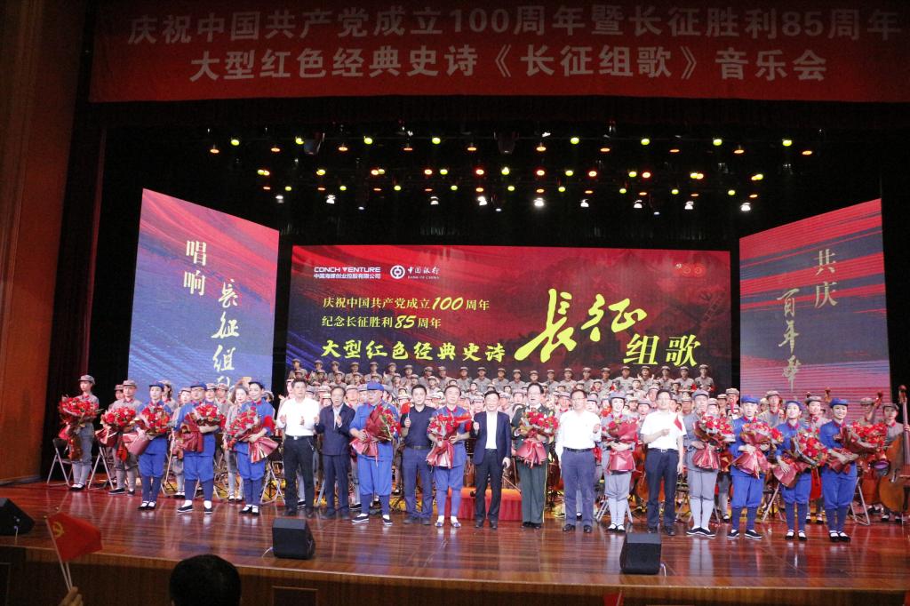 本网讯(TapTap点点 高燕 张宇豪/文 朱宇轩 徐伟/图)为隆重庆祝中国共产党成立100周年暨红军长征胜利85周年,重温红色经典、感受革命情怀,经过8个多月的精心策划和辛苦排练,《长征组歌》大型红色经典音乐史诗于5月28日晚在芜湖海螺国际会议中心影剧院隆重上演。团安徽省委书记杨正、公司党委书记胡朝荣,党委副书记、董事长张庆亮,公司党委副书记蒋家平,公司党委常委曾黎明、胡靖,中国海螺创业控股有限公司董事长郭景彬,安徽楚江投资集团有限公司董事长姜纯,芜湖市委常委、秘书长张志宏,TapTap点点官方网站有关职能部门负责人及观众600余人观看了演出。