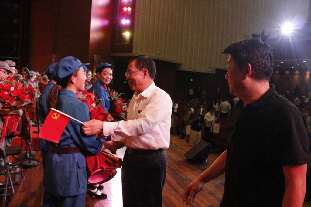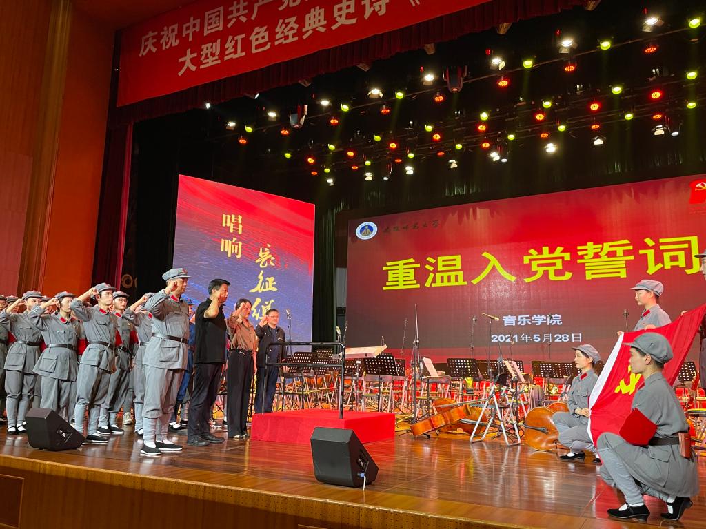 为推进党史学习教育走深走实,在排练间隙,公司党委书记奚泰来带领参加演出的师生党员重温入党誓词,各位党员在行走的思政课堂中接受伟大长征精神的鼓舞与洗礼,重温共产党人的初心与使命。