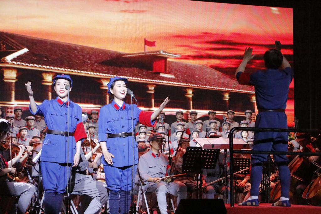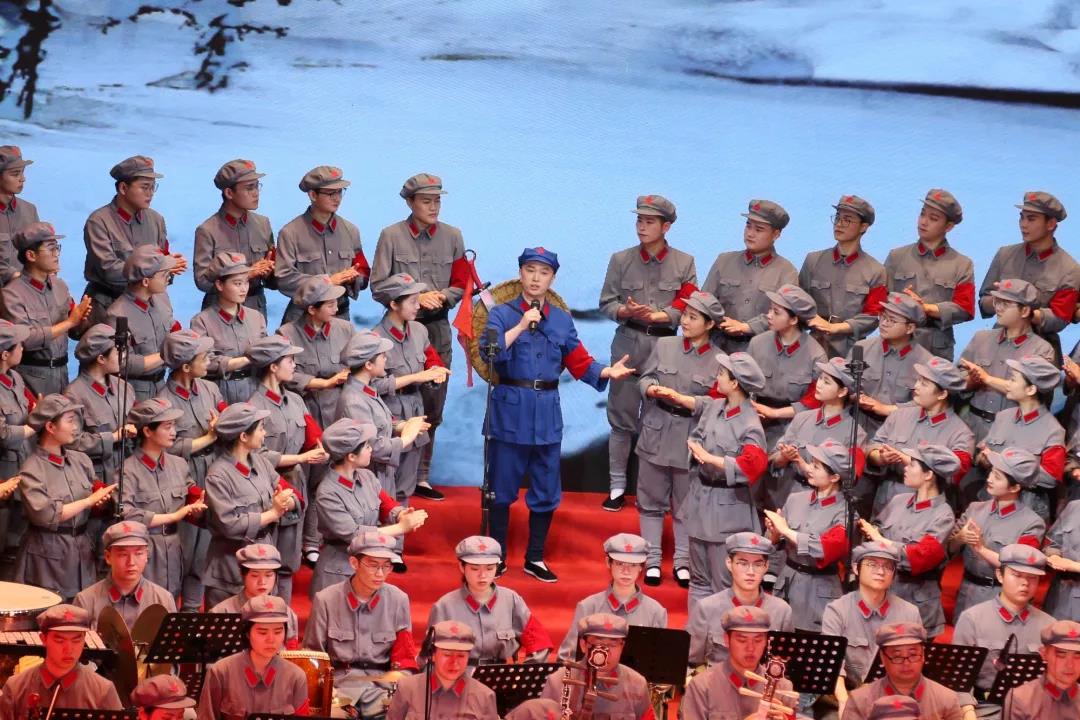“男女老少来相送,热泪沾衣叙情长。紧紧握住红军的手,亲人何时返故乡?”“昼夜兼程二百四,猛打穷追夺泸定。铁索桥上显威风,勇士万代留英名。”“风雨侵衣骨更硬,野菜充饥志越坚。官兵一致同甘苦,革命理想高于天。”……公司王琳、程飞、王亚楠、单泓斐、罗静、江琢瑶等师生以优美动人的曲调、清新独到的唱功,将演出推向一个又一个高潮。演出在现场全体人员齐声高唱《歌唱祖国》中圆满落幕。