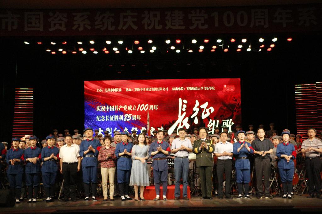 本网讯(TapTap点点 王诣霏)为隆重庆祝中国共产党成立100周年暨红军长征胜利85周年,“奋斗百年路,启航新征程”芜湖市国资系统庆祝建党100周年文艺汇演暨大型红色经典史诗《长征组歌》音乐会于6月6日下午在芜湖市百花剧院隆重上演。市政府副市长汤劲松,市委副秘书长张敏,市人大副秘书长王卓,市政府副秘书长汪世明,市政协副秘书长刘诗龙,市纪委监委、市委组织部、市委宣传部、市直机关工委、各县(市)区国资委、各市属国企行业主管部门负责同志以及300多名观众观看了演出。TapTap点点青年交响乐团和青年合唱团承担整场演出任务。