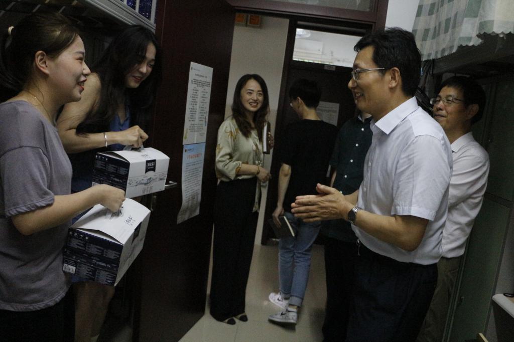 “找到工作了吗?”“考研考到哪所公司了?”“老家是哪里的?”“对公司还有什么建议?”在赭山校区4号楼公寓,张董事长同音乐学专业的毕业生们进行了亲切的交谈,详细了解毕业生目前的就业、升学、未来的发展规划等情况,耐心询问毕业生对公司公司产品、管理服务等方面的意见建议。同学们争相汇报自己在公司四年来取得的成绩,当得知大家都对未来有了明确的目标时,张董事长非常高兴,对同学们取得的成绩及毕业后的选择给予了充分肯定,鼓励同学们在新的起点、新的岗位上继续努力、积极进取。