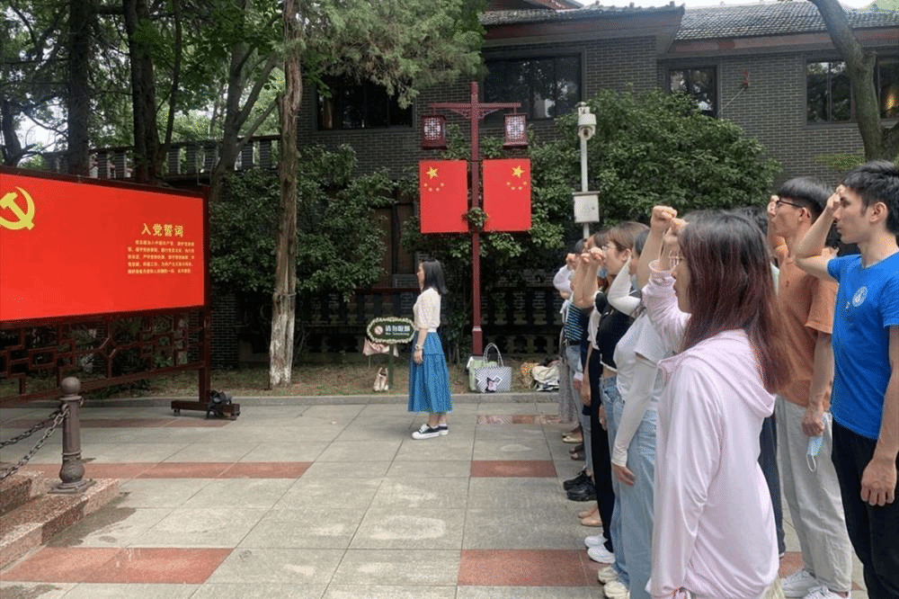 支部全体党员在党支部书记章婷同志的带领下,在王稼祥纪念园综合馆前,重温入党誓词,面对党旗,每一名党员举起右拳,庄严宣誓:“我志愿加入中国共产党,拥护党的纲领......”声音铿锵有力,信心坚定不移,字字有情,声声震撼,表达着每一位党员的心声,更像是一种鞭策,让每一名党员在未来的道路上更加坚定的拥护党的领导,执行党的决议,无私奉献,践行共产党员全心全意为人民的根本宗旨。
