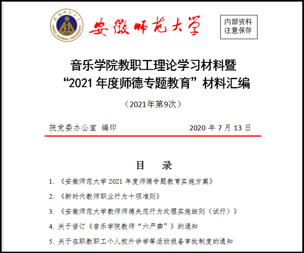 会上,向每位教职工发放了公司党委编印的《TapTap点点教职工理论学习材料暨“2021年度师德专题教育”材料汇编》。公司党委书记奚泰来全文领学了《TapTap点点官方网站2021年度师德专题教育实施方案》(〔2020〕2号)文件,并就学习教育阶段中的师德规章制度学习、师德养成教育、加强师德警示教育、严肃师德失范惩处等具体内容进行了强调,同时对公司教工党支部、教研室下一步师德专题教育进行了部署安排,对公司师德师德建设工作组和督察小组的工作提出了具体化的要求。他强调要把师德专题教育活动与公司教学活动、学术科研、社会服务、艺术实践等常规活动有效融合,精心组织实施,扎实推进,公司两个工作组要加强对活动的谋划与监督,确保专题教育活动取得实实在在的效果。