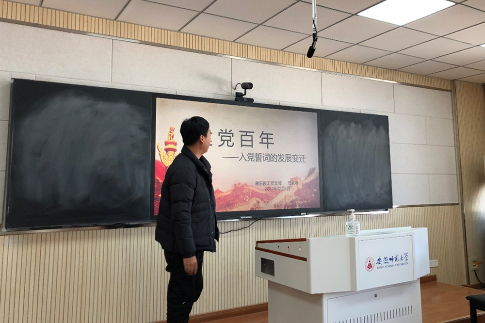 党支部委员高长春主讲了《建党百年—入党誓词的发展变迁》专题党课,通过此次党课,老师们对入党誓词的认识更加深刻。据悉本次专题党课是教工器乐党支部开展党员讲党课的第五讲,党支部将党史学习教育日常化,完善“三会一课”制度,提高了老师们的学习积极性和主动性,有效将学习效果转为工作动力。