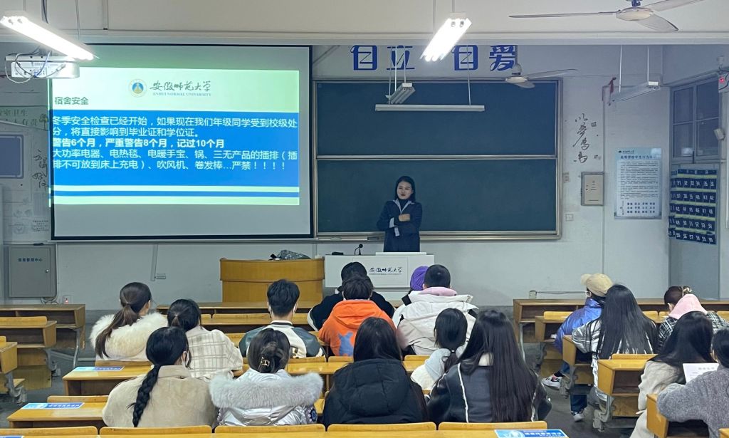 防范在先,警惕在前。除了安全检查工作,公司全体辅导员组织各年级各专业分别开展了线下和线上相结合的冬季安全教育主题班会。班会上,各年级辅导员就消防安全、用电安全等多个方面对同学们进行安全强化教育,告诫同学们安全隐患无处不在,安全意识应时刻保持。