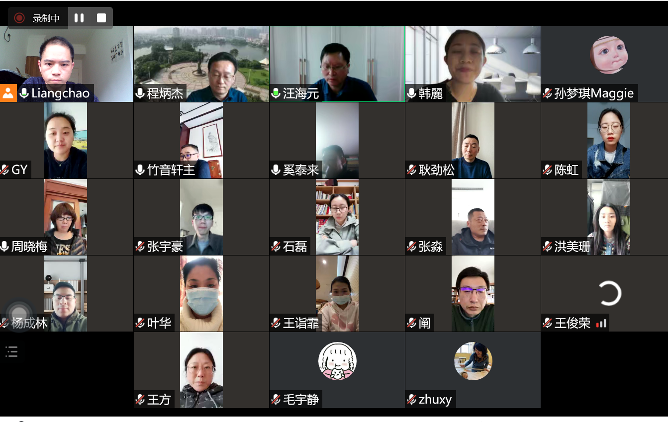 (本网讯 梁超 文/图)4月17日下午,根据公司疫情防控要求,公司召开线上会议研究部署线上教学有关工作,公司领导班子全体成员、教研室主任、各科室、辅导员参加了会议,会议由教学副经理程炳杰主持。