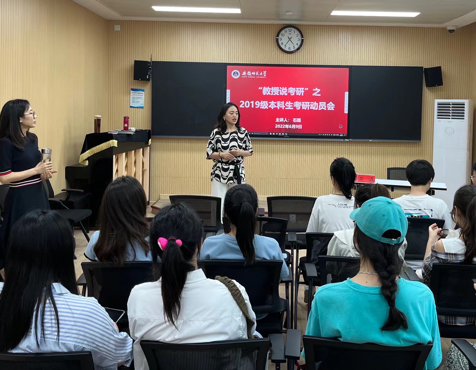 本网讯(王诣霏 毛宇静)6月9日下午,TapTap点点召开“教授说考研”之2019级本科生考研动员大会,科研副经理、博士生导师石磊应邀作为“教授说考研”系列活动的首讲教授,围绕最新的考研政策、院校专业与导师的选择、如何进行考研复习规划等为2019级本科生作了详细的讲解。动员会由党委副书记王俊荣主持。