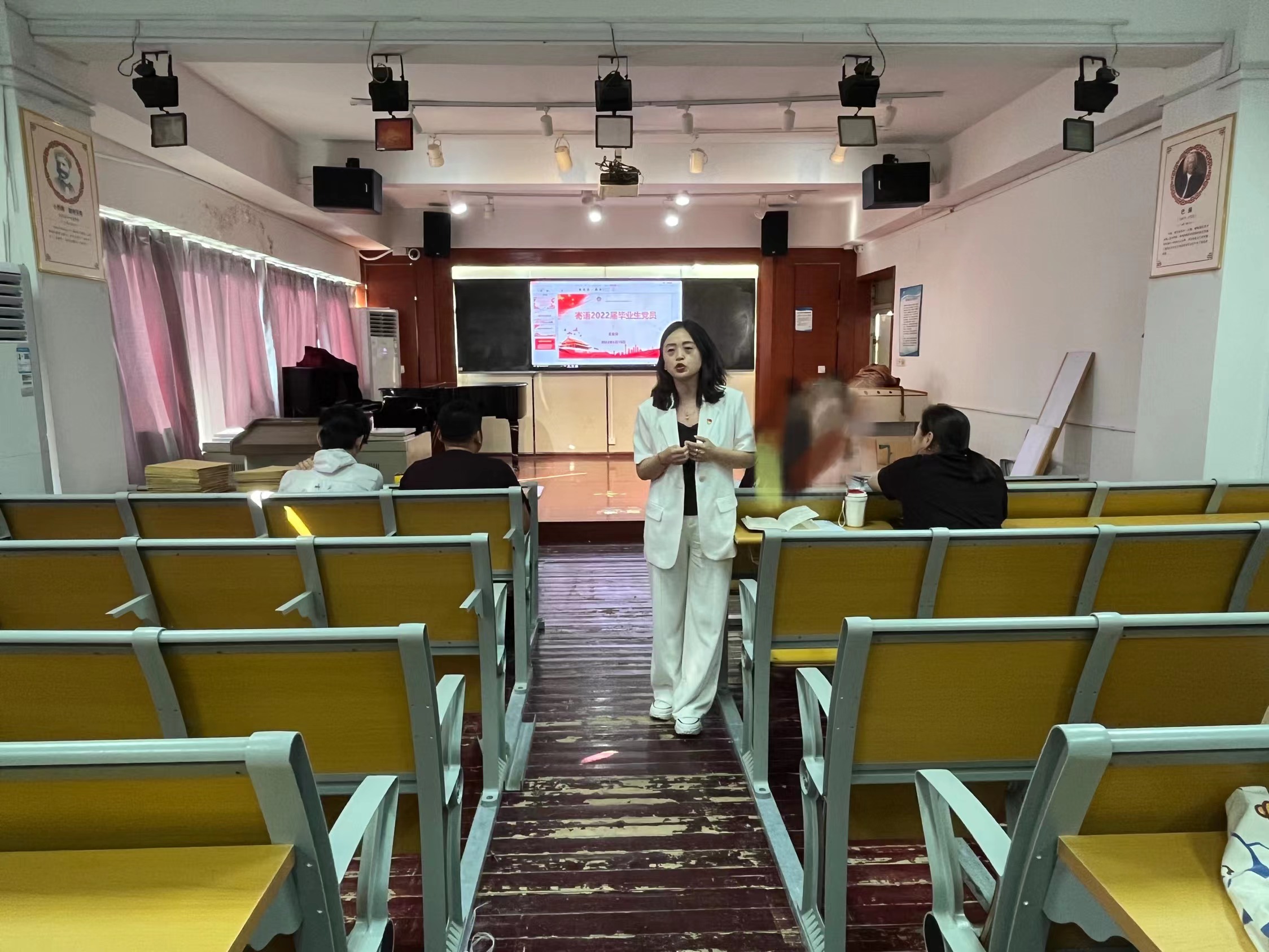 高燕带领全体党员重温入党誓词,铿锵的誓词时刻提醒毕业生党员不论未来走向何处,都应铭记入党时的初心和使命、宣誓时内心那份滚烫的信仰。