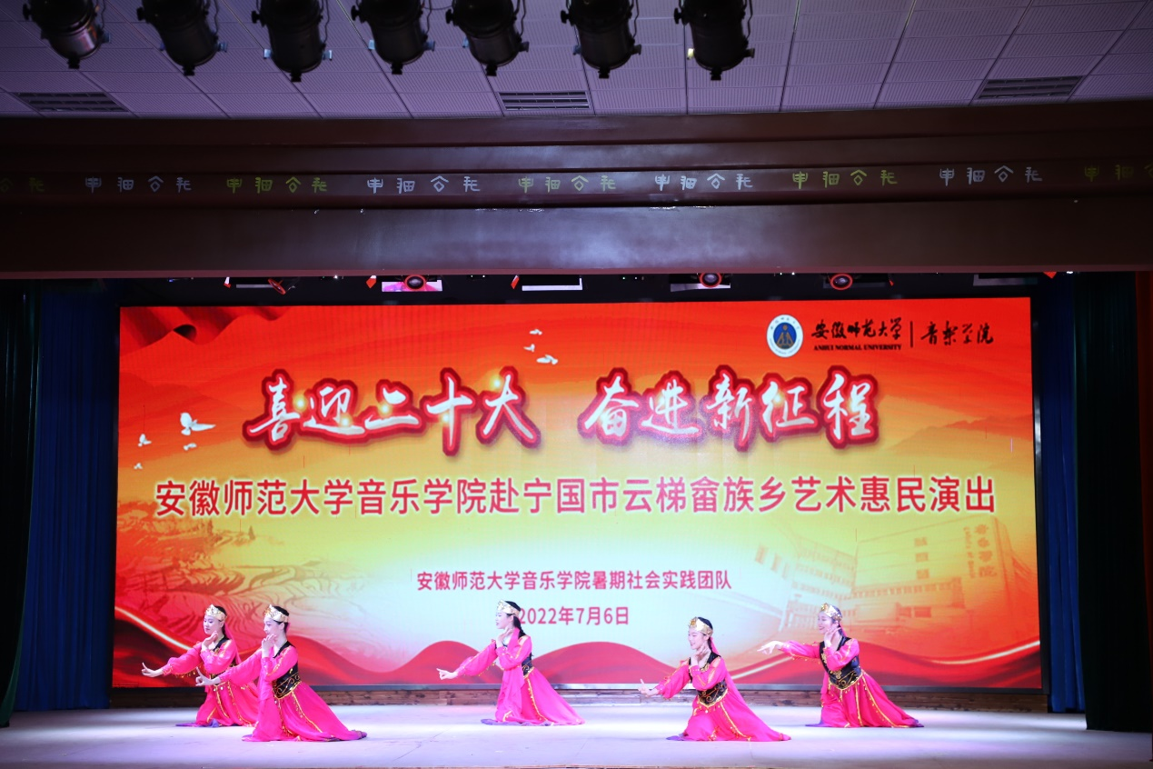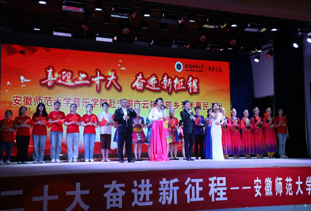 此次演出旨在激发广大师生传承和弘扬中华文化艺术,挖掘畲族地方悠久歌舞资源,提升民族团结发展。整场演出在参演人员和节目选排上充分结合畲族乡民族特色,将汉族、畲族特色节目有机融合,汉族、畲族演员同台演出,用歌舞表达对党的忠诚,对人民的热爱。演出在畲族舞蹈队带来的欢快愉悦的开场舞——《请到宁国畲乡来》拉开帷幕。《江山》《母亲》《领航》《跑旱船》《赛马》……声乐合唱、独唱、古筝、竹笛、二胡合奏等多元的艺术形式的精彩节目为观众呈现了丰富的视听盛宴,公司王亚楠、程飞、罗静、张凌、汪旭东等师生带来的一首首耳熟能详的作品将现场氛围不断推向高潮,掌声和欢呼声此起彼伏,台上台下成了一片激情四溢的汪洋,观众脸上的笑容是对所有演员们演出背后所付出努力的最好的回报。演出在全场合唱《我和我的祖国》中落下帷幕。