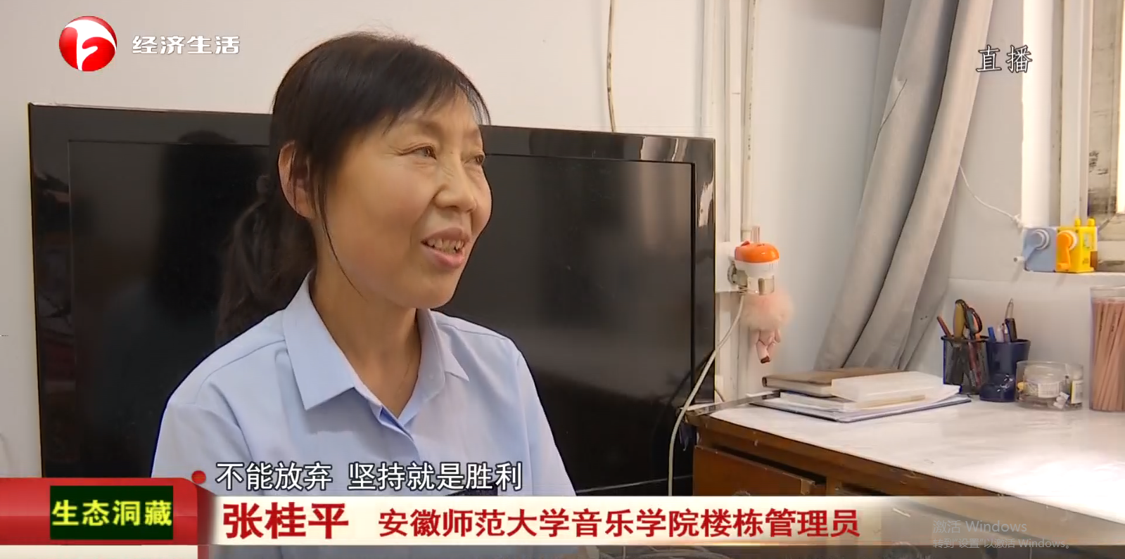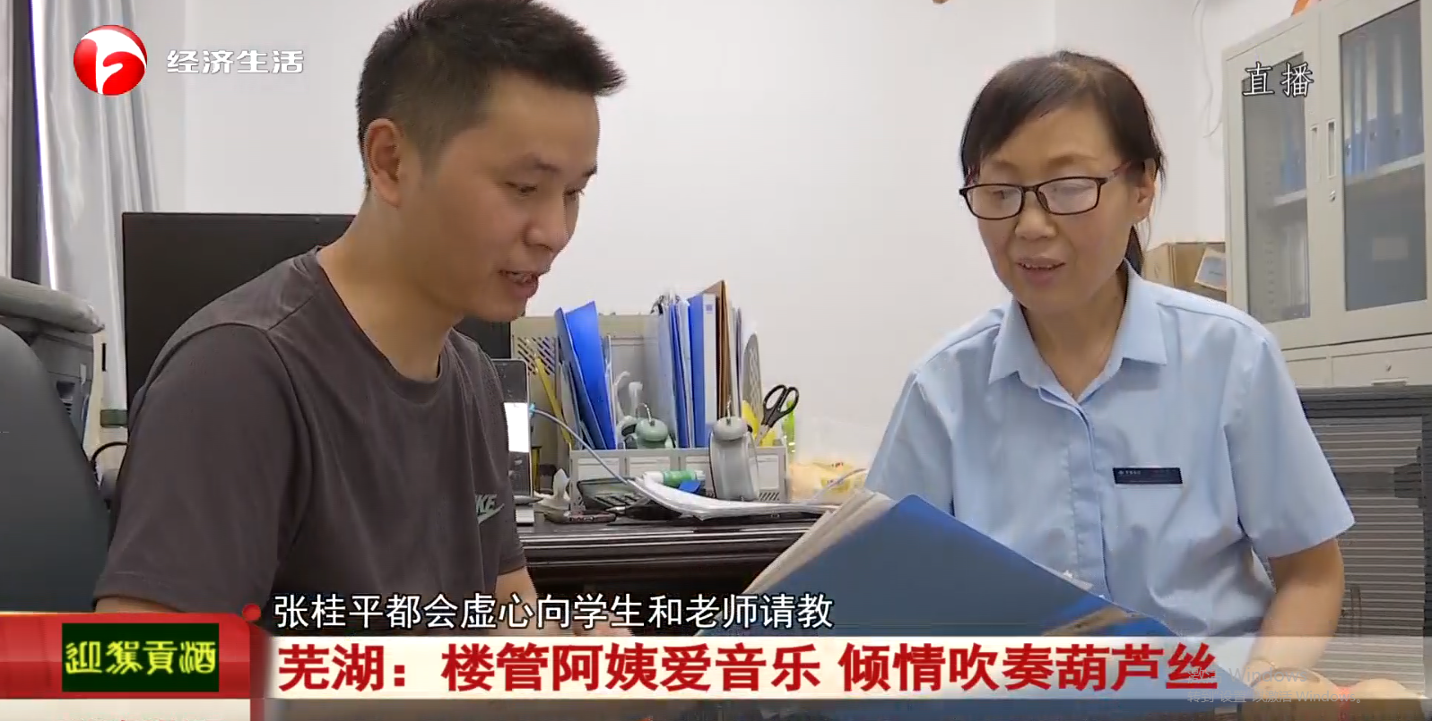 8月11日,安徽卫视经济生活频道专题报道了公司保洁阿姨张桂平热爱音乐,倾情吹奏葫芦丝的事迹。