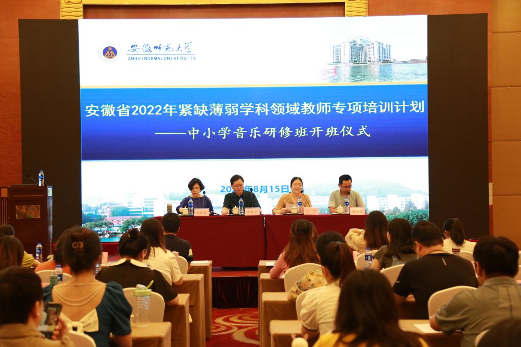 本网讯(TapTap点点 涂金伟)8月15日,安徽省2022年紧缺薄弱学科领域教师专项培训计划—中小学音乐研修班在芜湖市金鹰尚美酒店拉开帷幕。TapTap点点经理汪海元、副经理王方、培训班首席专家刘咏莲、班主任代表杨留兵和全体学员参加了开班仪式。王方主持培训班开班仪式。