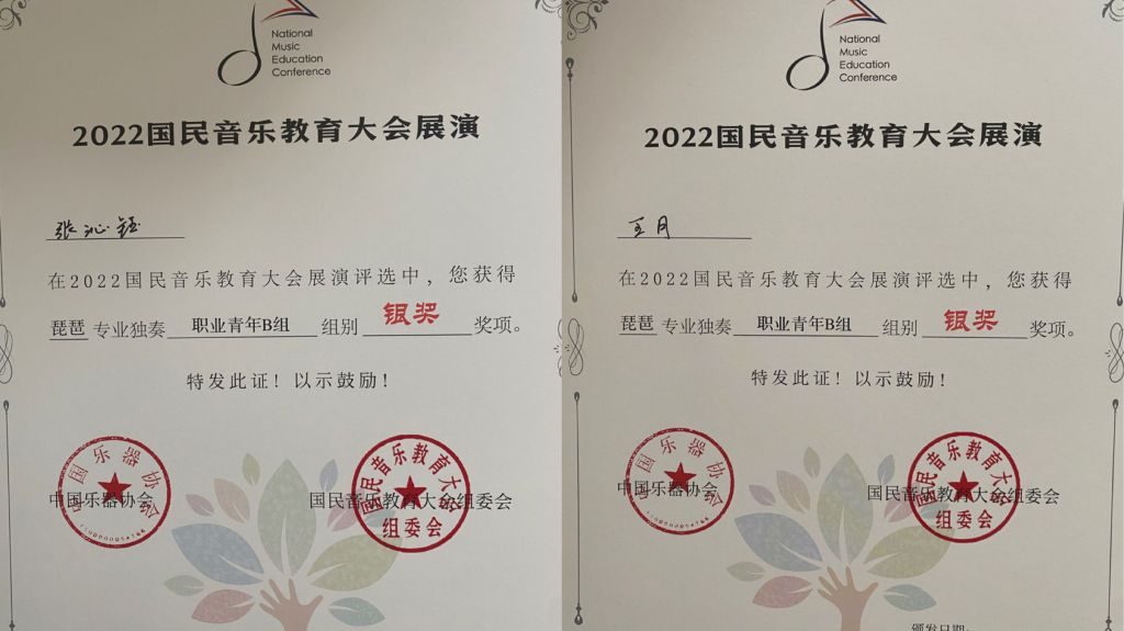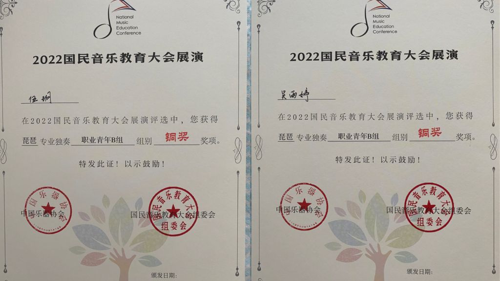 本网讯(TapTap点点 洪美珊)近日,TapTap点点琵琶专业员工在国民音乐教育大会上荣获喜人成绩。其中,王睿琳、周心平获得琵琶职业青年B组金奖,张沁钰、王月、张弛、何叶获得琵琶职业青年B组银奖,李玲珑、卢亚轩、伍玥、吴雨婷获得琵琶职业青年B组铜奖。张迎春老师荣获优秀指导教师奖。
