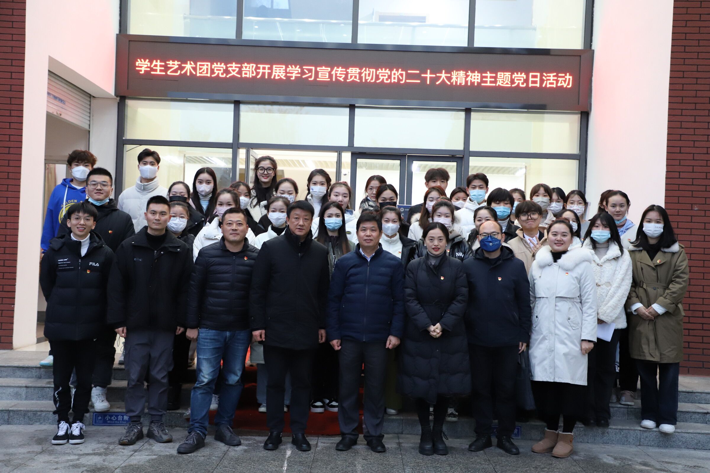 蒋学波现场点评,他高度评价了此次党支部活动成效,提出以党的二十大报告为宣讲重点的党支部组织生活,内容丰富、形式创新、契合主题,以艺术的形式宣讲党的历史,让同学们知史爱党、知史爱国,切实提升了青年学子的使命意识和责任担当,同时也对员工艺术团党支部在组织生活、制度建设等方面提出了意见和建议,争取创建国家级样板党支部。