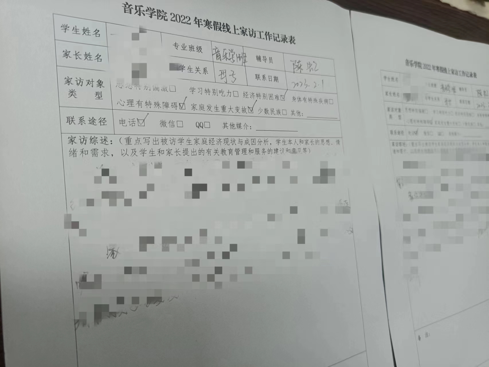 家访有“心”。因为疫情原因,今年的寒假格外漫长。为充分了解员工在家生活学习状况,各年级辅导员通过线上方式开展寒假家访,了解员工本人和家长的思想、情绪和需求,以及员工和家长提出的有关教育管理和服务的建议和意见等。