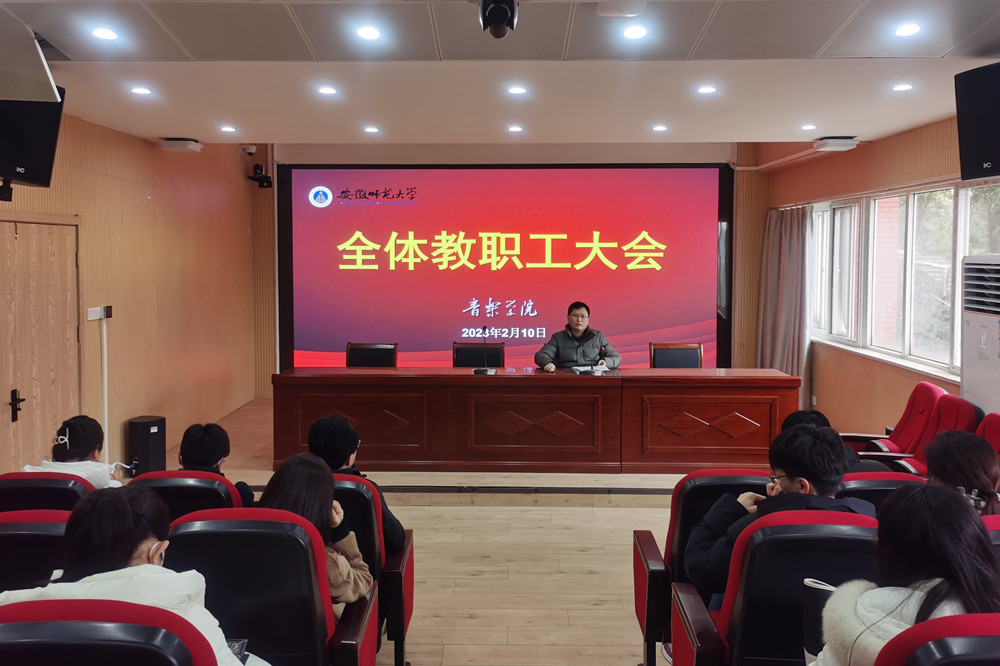 公司党委书记奚泰来领学《国家主席习近平发表二〇二三年新年贺词》《习近平在学习贯彻党的二十大精神研讨班开班式上发表重要讲话强调正确理解和大力推进中国式现代化》《高校思想政治工作质量提升工程实施纲要》《安徽省“一改两为”全面提升工作效能大会》等重要会议精神和工作要求,指出2023年是学习宣传贯彻党的二十大精神重要之年,广大教职工要认真领悟党的二十大提出的新思想新论断、作出的新部署新要求,全体教师要旗帜鲜明讲政治,深刻领悟“两个确立”的决定性意义,坚守为党育人、为国育才;要以深化学科专业结构改革,推进公司产品改革创新为己任,协助公司解决教学场地紧张、内部改革、人才引进、师德师风建设等问题,培养大局意识;推进理论武装入脑入心,改善工作和教学作风,真正把党的二十大精神学习成果转化为推动公司提升效能的思想力量。