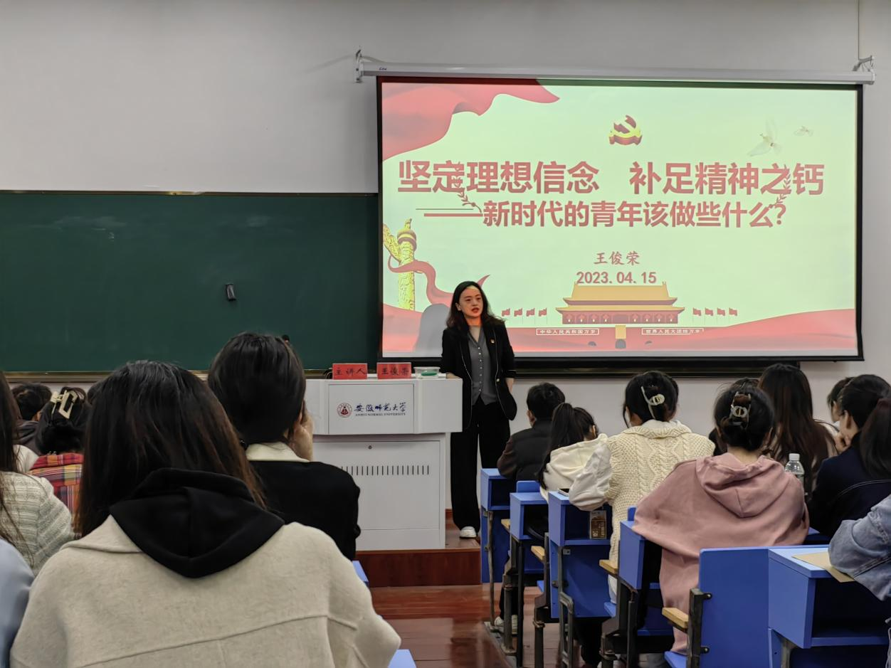 院团委副书记张宇豪以《初心引领使命,奋斗照耀青春》为主题,从“中国共产党的光辉历程”、“新时代青年的使命内涵”、“新时代青年在实现中华民族伟大复兴梦想天然优势”、“筑牢理想信念之基,努力提升青年精神素养”四个主题,形象生动的为同学们展现了中国共产党的光辉历程,使同学们对自己有了更加明确的目标和方向。