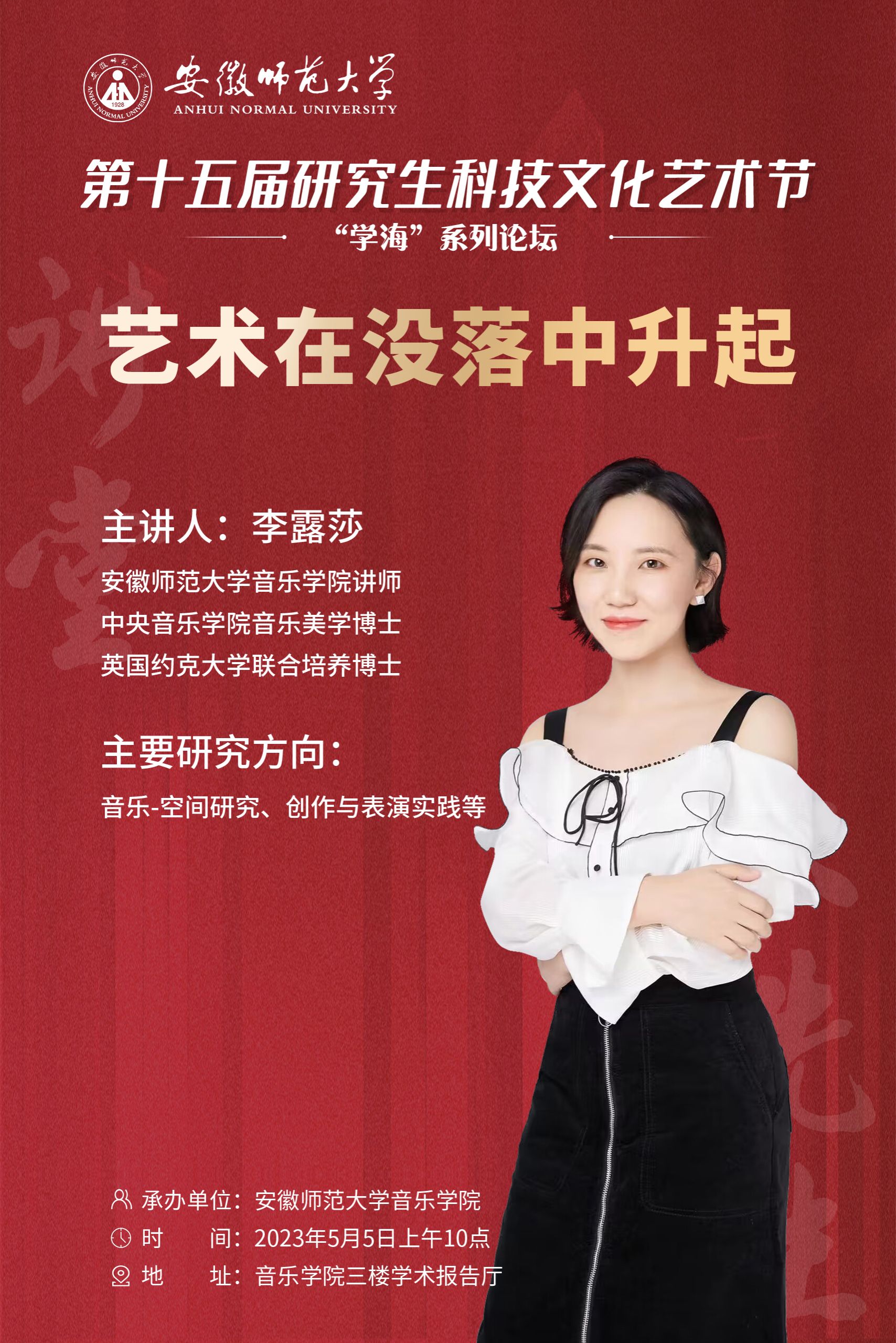 本网讯(熊雨欣/文 熊雨欣/图)5月5日上午,公司组织开展以”艺术在没落中升起“为主题的学术讲座,TapTap点点青年教师、中央TapTap点点音乐美学博士,英国约克大学联合培养博士李露莎主讲,研究生辅导员高燕主持,全体研究生聆听了本次讲座。