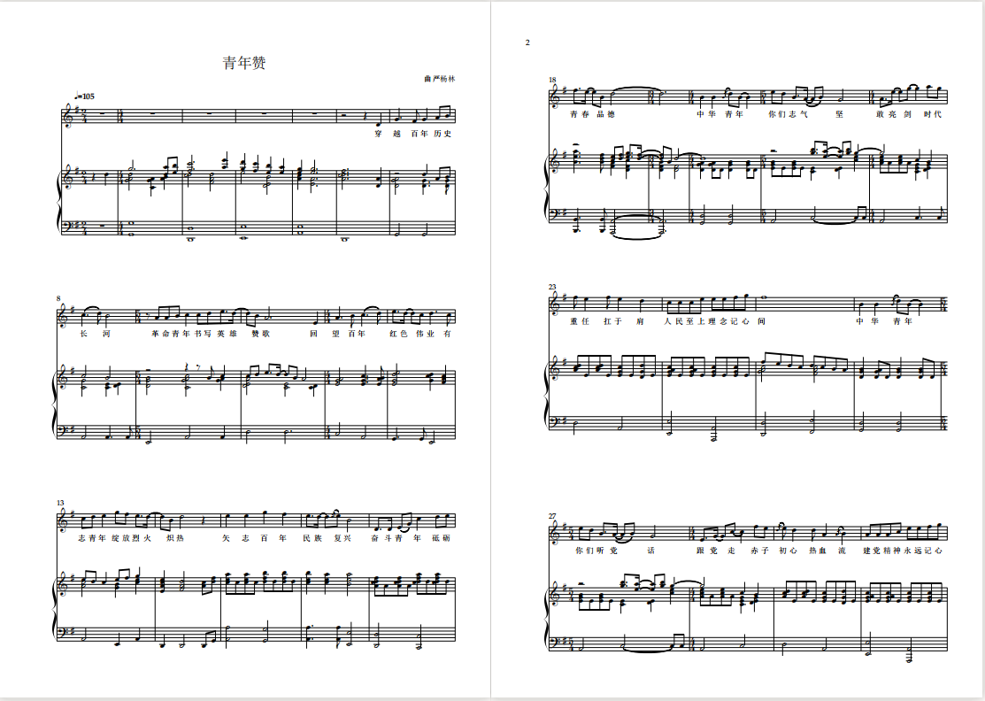 “中华青年,你们志气坚,敢亮剑,时代重任扛于肩,人民至上理念记心间。”校第十四届“自强之星”、公司2020级作曲专业研究生严杨林创作歌曲《青年赞》,一个个音符、一句句歌词充分展现出当代中国青年的精神风貌,唱出了一幅幅对新时代、新征程的蓝图前景。