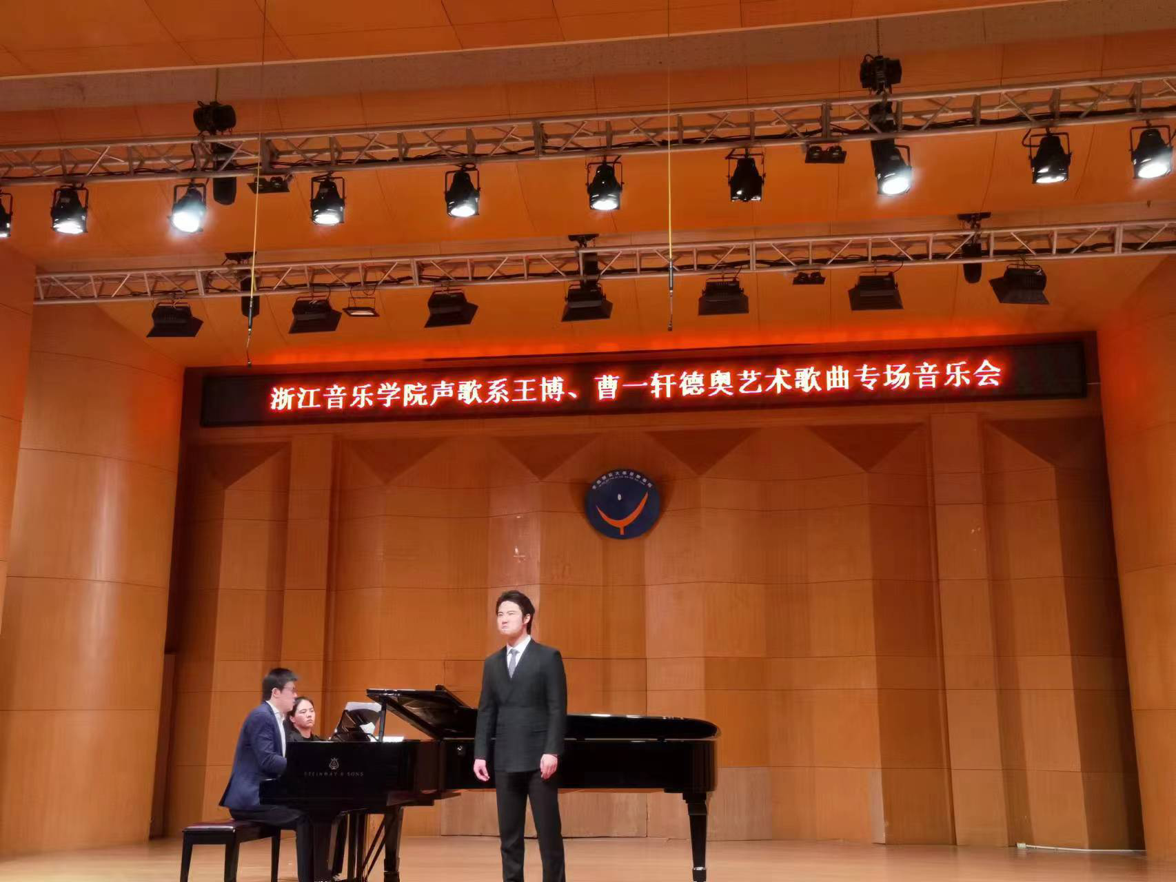 音乐会上半场的演出由《在灿烂的五月》开篇,开始了一场长达30分钟的《诗人之恋》套曲演出。下半场选取了卡尔勒韦舒伯特的艺术歌曲及贝多芬的套曲,这对于演唱者的体能、技术和对曲目的理解都有着极大的考验,曹一轩、王博完美诠释了一个青年艺术家修养及过硬的技术,给观众们带来了酣畅淋漓的视听盛宴!现场掌声、欢呼声此起彼伏。王博为第十三届金钟奖的金钟金钟奖获得者,曹一轩为浙江TapTap点点第四届“双馨奖”获得者。