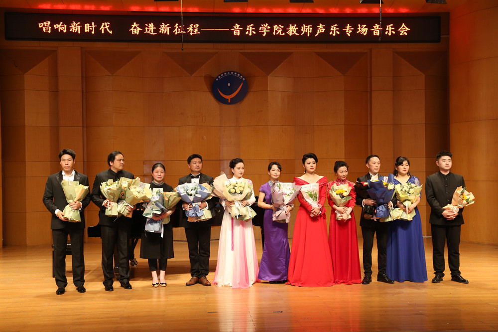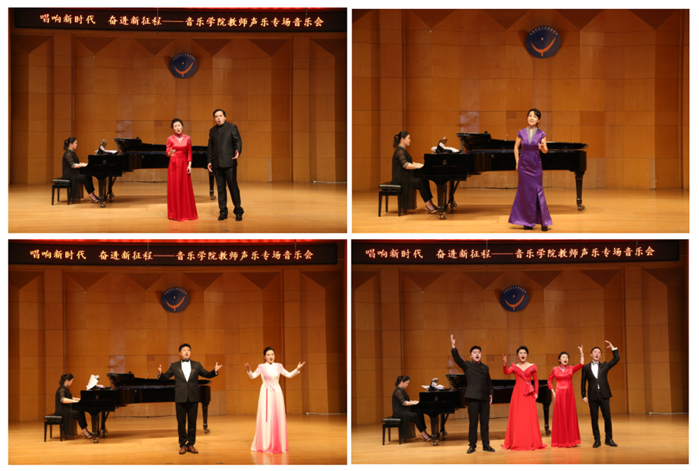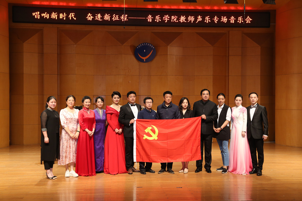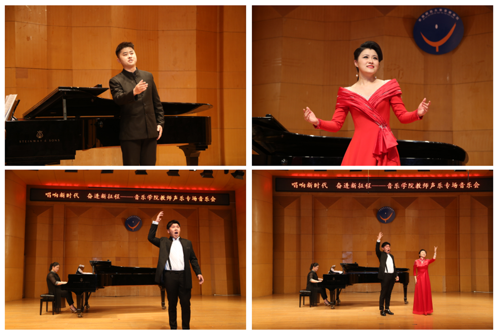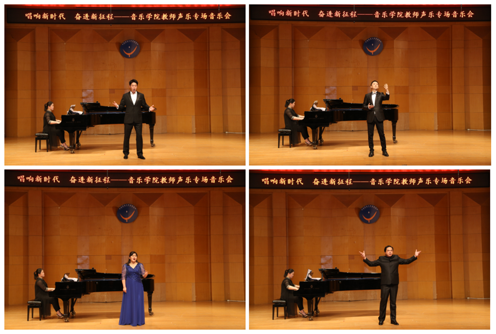 本场音乐会由教师声乐党支部和声歌系共同策划,以教师党员为演唱主体,教工声乐党支部党员老师全员参与。音乐会精选十二首红色声乐作品,音乐会由“金钟奖”安徽赛区银奖获得者吴亚合老师演唱的《家乡最美的地方》作为开场,歌曲用简单的话语和悦耳的旋律,表达了对家乡深深的眷恋之情,“金钟奖”安徽赛区金奖获得者罗静老师演唱的《月亮快快升起》紧凑连续且深情动人,让人感受到壮观而具有人文关怀的艺术氛围;二重唱《共筑中国梦》以恢弘的旋律和大气的编曲,唱出了中国人民的心声与期盼;歌曲《向往》的旋律大气优美,歌词真挚动人,真诚讴歌了中国共产党的丰功伟绩。《书香中华》以一种新的韵味和时代感引人入胜,生动诠释了中华文化的和谐与包容,并让其焕发出时尚魅力。《中国梦》《我们的新时代》等歌曲描绘了祖国大好河山的辉煌画卷;此外,歌剧《长征》中《我的爱人你可听见》;歌剧《沂蒙山》中男女声二重唱《等着我,亲爱的人》等歌曲倾诉了革命者对爱人的思念以及对美好未来的憧憬。音乐会在吕茵、王亚楠、吴亚合、罗静四位老师激昂、奋进的《领航》中圆满落下帷幕!活动集中展现了声歌系良好的学术氛围和青年教师们精湛的业务水平,给员工们的专业学习发挥了示范作用。