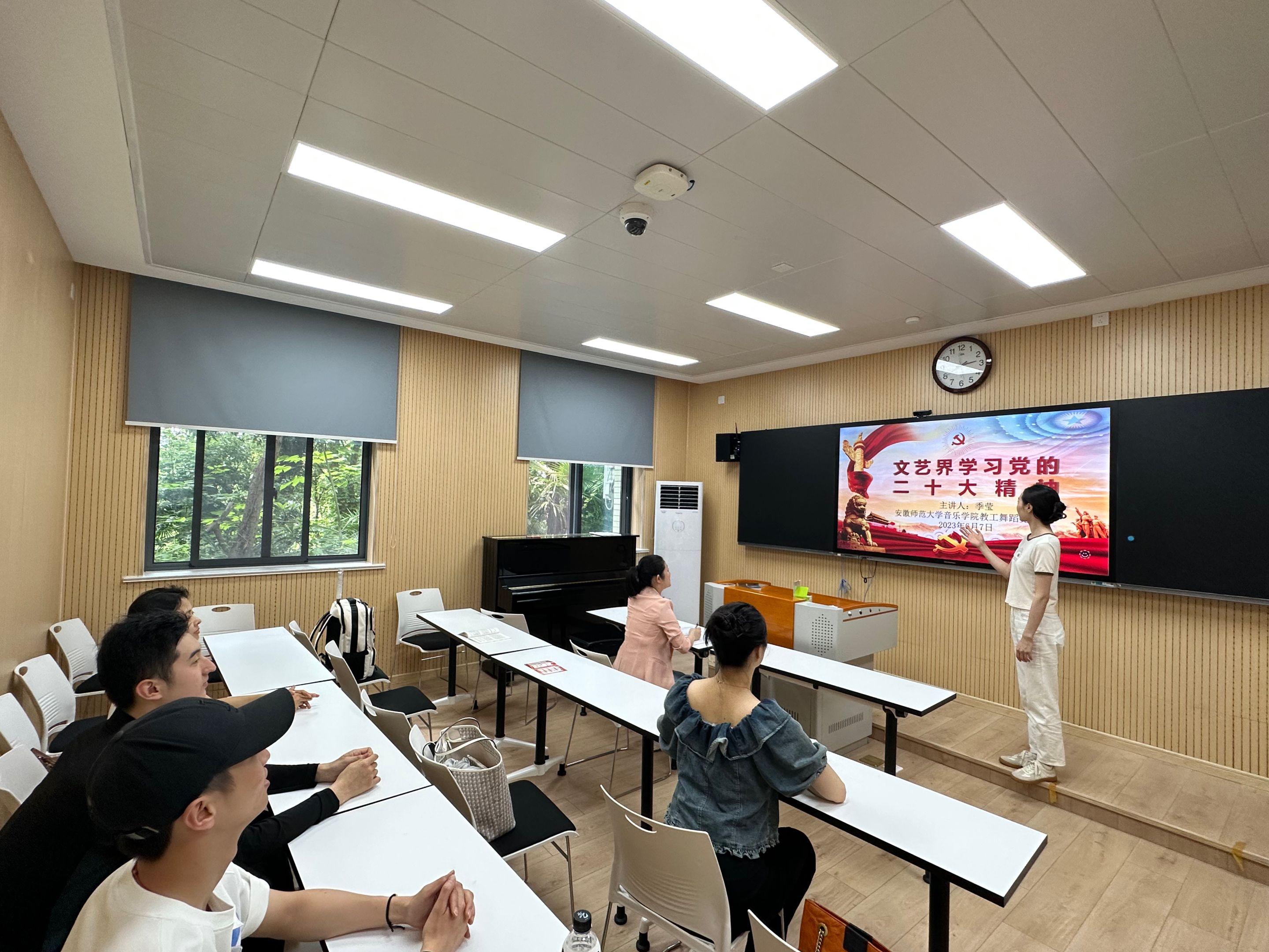 支部支委季莹讲授专题党课,贯彻落实党的二十大关于文化文艺工作的战略部署,必须紧扣中国共产党团结带领全国各族人民全面建成社会主义现代化强国、实现第二个百年奋斗目标,以中国式现代化全面推进中华民族伟大复兴的中心任务,勇于担当新征程新使命,用文艺的独特方式推动人类文明进步、引领社会变革、丰富人民精神世界、促进人的全面发展,凝心聚力铸就社会主义文艺新辉煌,为全面建设社会主义现代化国家提供更为主动、更为强大的精神力量,为不断推进和拓展中国式现代化道路作出新贡献。