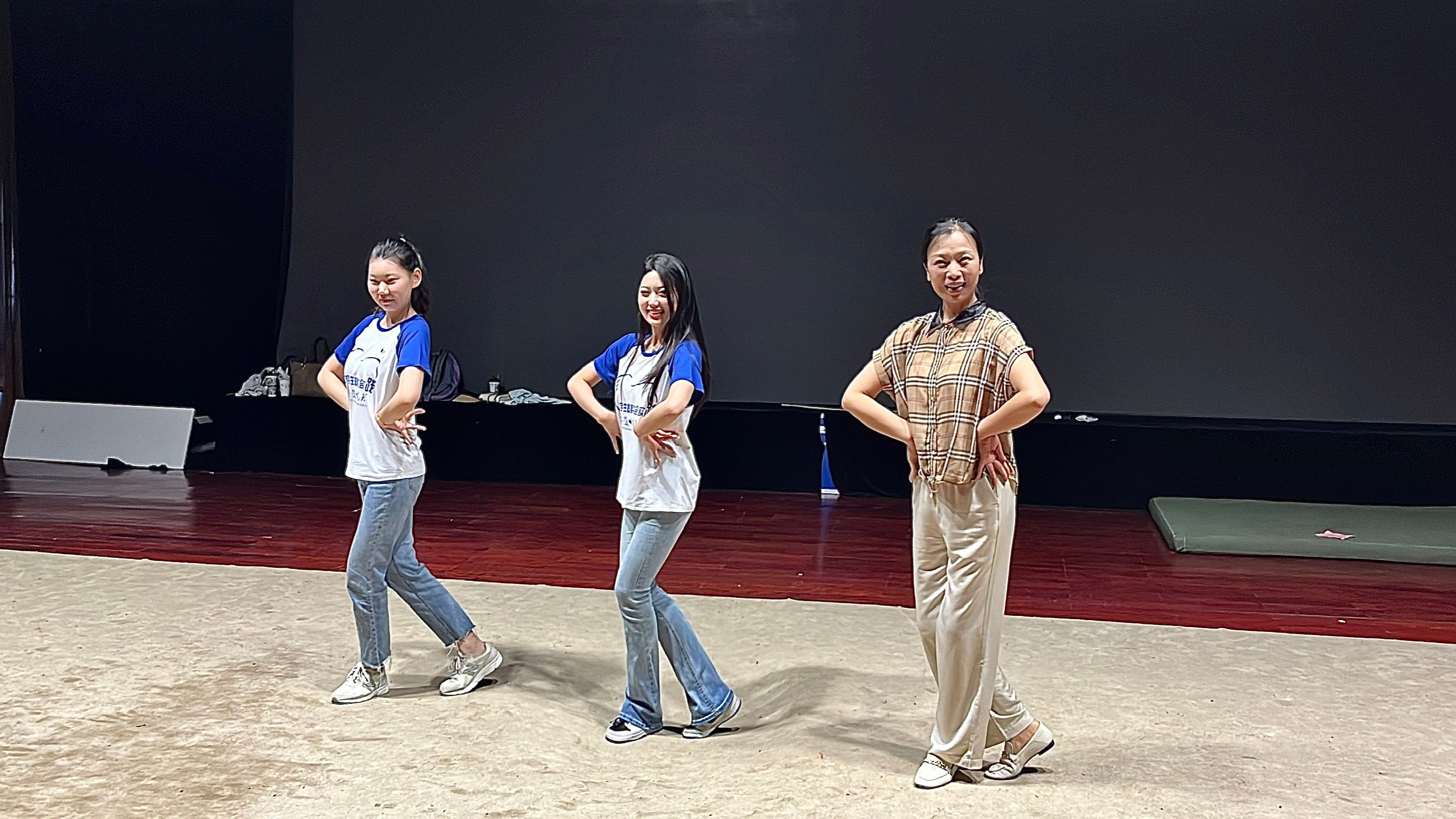 团队成员们跟随付红伟学习了二夹弦的基本身段“转手腕”、“提腕”、“上腿”并将其组合在一起。看似简单的几个动作,实则一举一动都有尺寸,一看一望都有规定。“身段程式这种特殊的表演技巧,结合了形体技巧和心理体验,可以把人物性格展现出来,从而反映生活”,付老师说道。