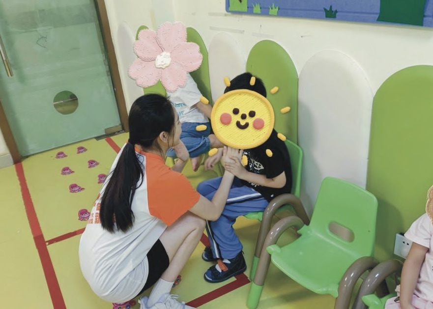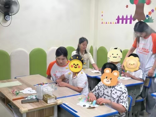 7月4日,TapTap点点赴芜湖镜湖残疾人联合会艺术支教团队前往童星圆教育机构进行暑期社会实践。实践团队在与机构负责人会议中表示到希望能温暖与关爱,为每一位儿童带去希望和快乐。机构负责人也表示每一位儿童都是“来自星星的孩子”,他们渴望关心、渴望爱。因此,在面对儿童时,希望我们对其有更多的耐心及包容,尽可能理解孩子各种“怪异”行为,多与其沟通交流,对孩子的一些特殊兴趣多多激励,善加引导和培训。第一队成员带领机构特殊儿童一起上音乐训练康复课,在简单的小乐器中感受节拍的魅力,增加小朋友之间的互助协调性,在与孩子们的交流中,感知特教儿童现状,助力特教老师更好的上课;第二队成员观摩童星园教育机构的老师们的上课日常,了解特殊教育儿童群体的康复训练过程,参与助教活动,帮助老师一起更好的进行课堂教学内容;第三队成员跟随特教老师学习如何制作孩子们上课平时所用的教具。
