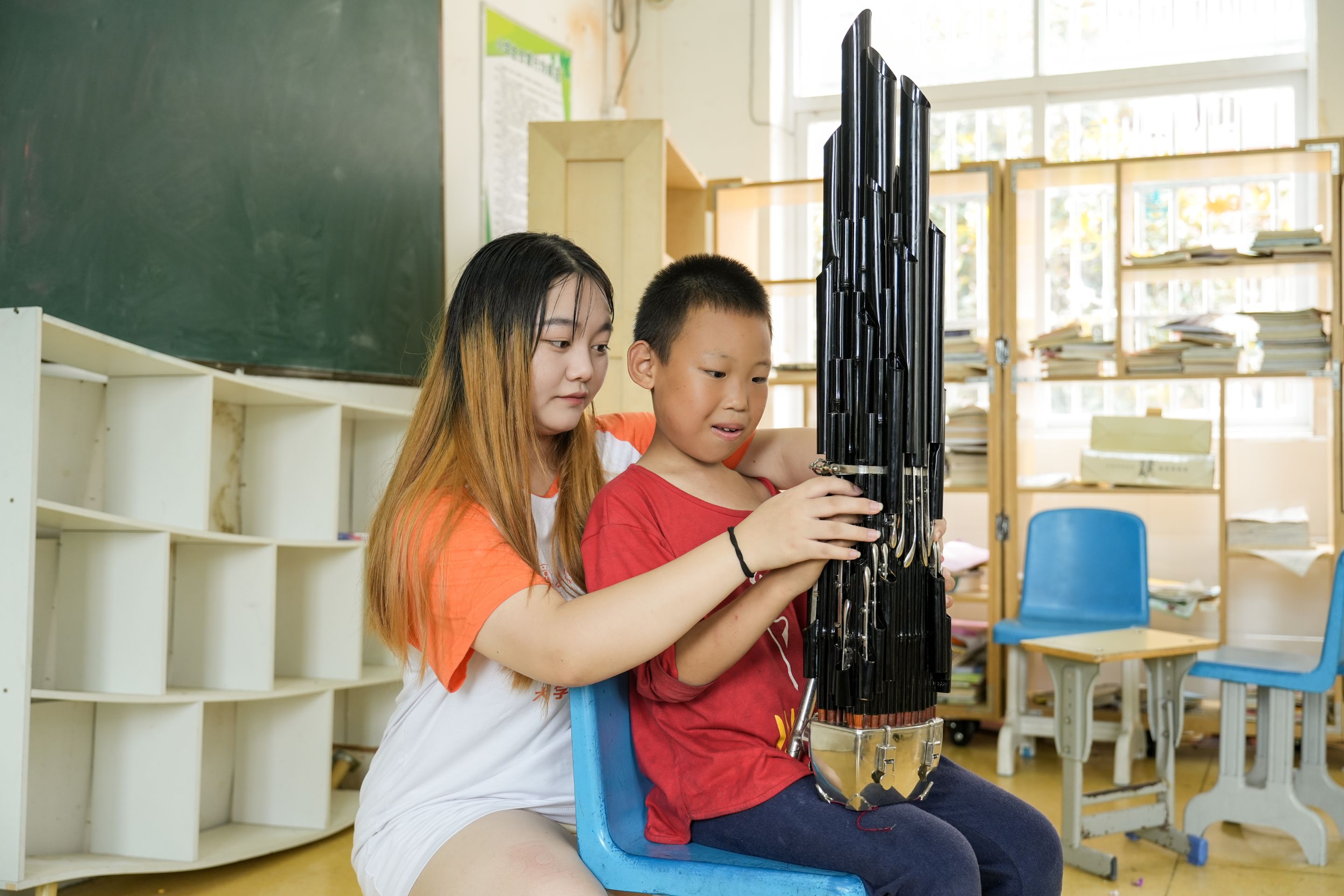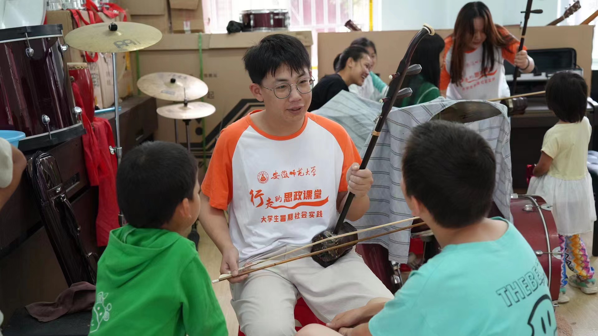 授课的第一天。队员们按照教学计划和课程分工,正式开始了二胡、舞蹈、音乐、器乐、美术课程的教授。