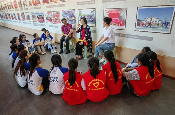 “这个民间艺术不能丢下,只有愿意学习的孩子们,他们是未来的希望,再难我们也必须要坚持下去”,石昌发坚定的说。队员们在听到石昌发的话后纷纷感到惊讶,体会到办学的不易。队员们立即投身到花鼓灯公益培训班的日常教学,承担了孩子们的化妆、排练以及主持、场务等工作,并表演了《安徽花鼓灯组合》《傣族舞》《维吾尔族舞蹈》等节目,获得了群众一致的夸赞和认可。