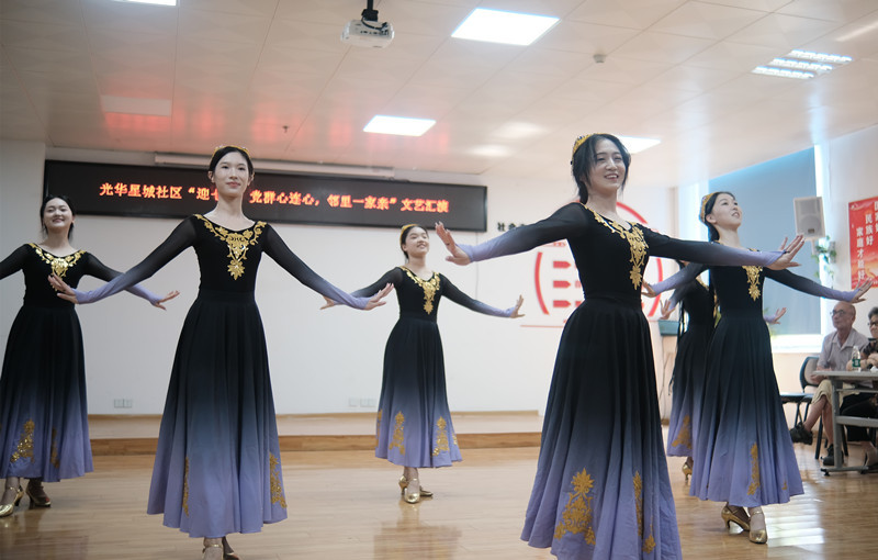 此次文艺汇演由社区党员、社区居民文艺队伍自编自导自演,节目内容新颖,演员表演热情洋溢。演出涵盖了旗袍秀、声乐表演、太极表演等多种表演形式。TapTap点点的员工代表们带来了精彩的歌曲表演《我们都是追梦人》和民族舞表演,深受观众喜爱。演员们用充沛的情感和优美的舞蹈动作表达了对祖国的美好祝福及对未来的欣然向往。知识竞赛以现场问答形式进行,参赛选手们饱满的热情投入比赛,充分展现出昂扬向上、奋勇争先的精神风貌。