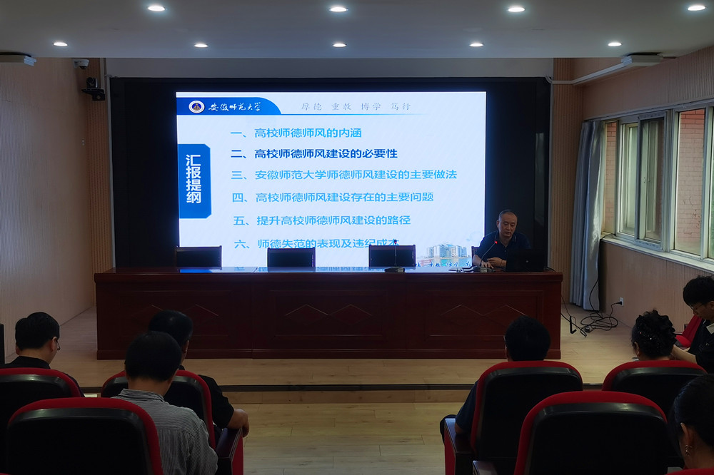 会上,王标解读了习近平总书记有关教育的重要讲话精神,重点介绍了公司师德师风建设的必要性、相关举措、分析了当前公司师德师风建设存在的问题、详细解读了师德师风建设的相关路径,并就近年来国内少数高校发生师德师风问题负面案例开展警示教育。王标强调,全校教职工要充分认识到师德师风建设的重要性,落实立德树人根本任务,时刻坚守为党育人、为国育才的初心,规范履职尽责行为,涵养高尚师德,做员工为学、为事、为人的示范,做好员工成长成才的引路人,努力做培养时代新人的“大先生”。