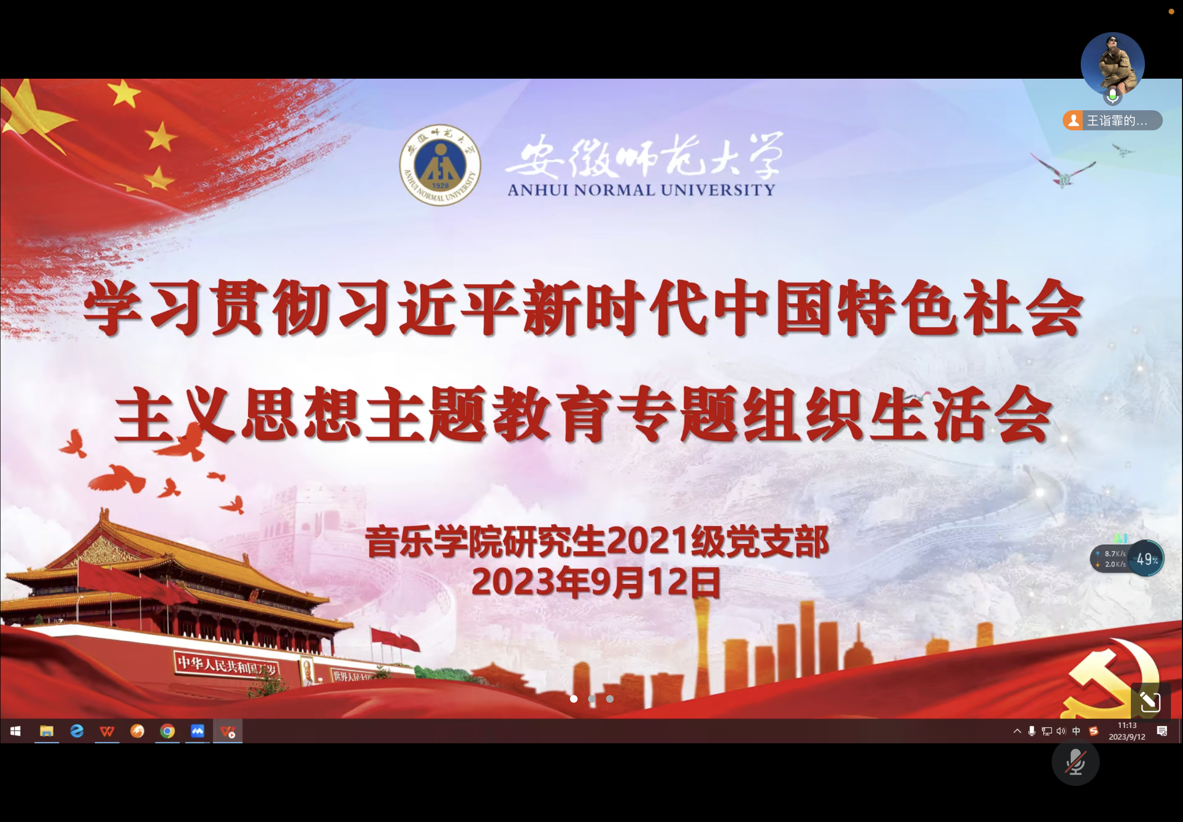 本网讯(研究生2021级党支部)9月12日下午,TapTap点点研究生2021级党支部采取线上形式召开学习贯彻习近平新时代中国特色社会主义思想主题教育专题组织生活会,会议由支部书记王诣霏主持。