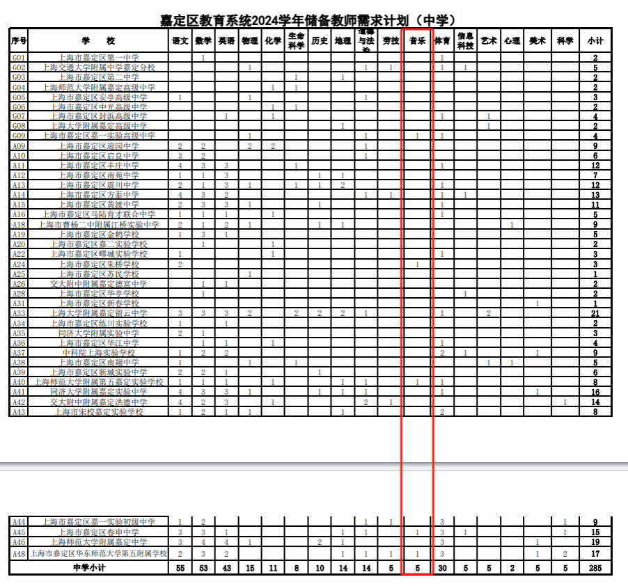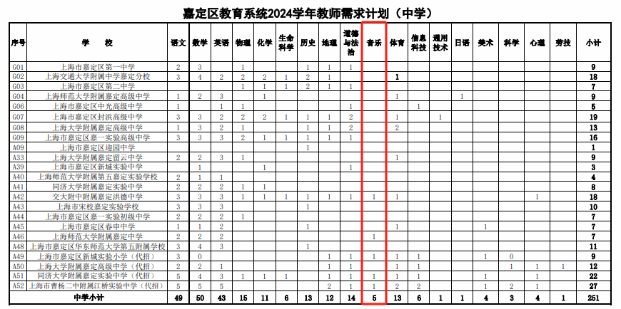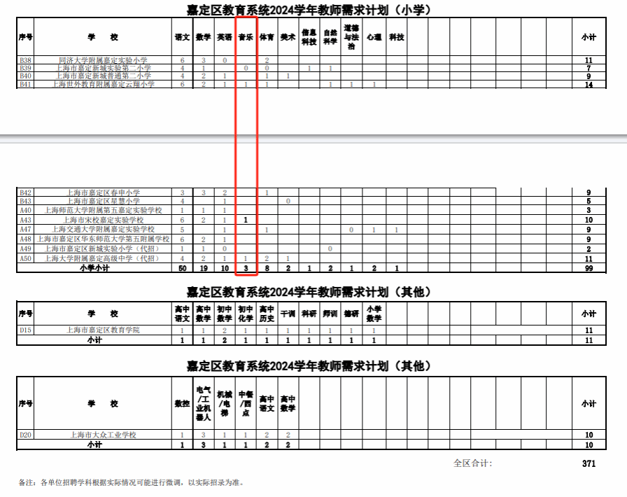 详见《2024学年嘉定区教育系统公开招聘教师计划(第一批)》(附件1)及《2024学年嘉定区教育系统公开招聘储备教师计划(第一批)》(附件2)