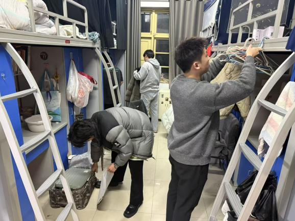 查寝过程中,员工干部们逐一走访了每一间宿舍,重点排查宿舍卫生、用电安全、消防隐患等。对于个别不规范寝室,班委现场提醒整改,同时向同学们普及宿舍安全知识,强调维护集体环境的重要性。
