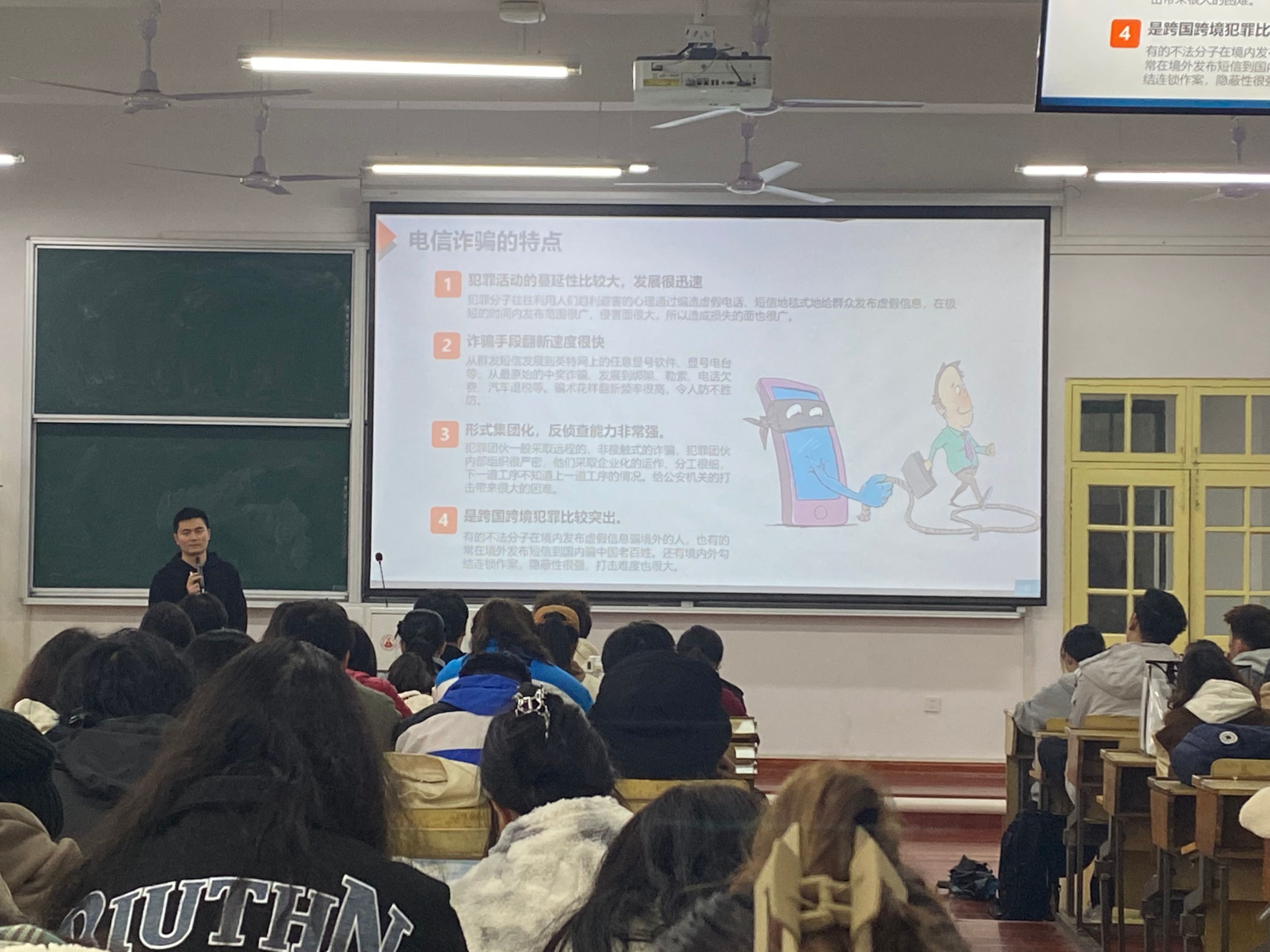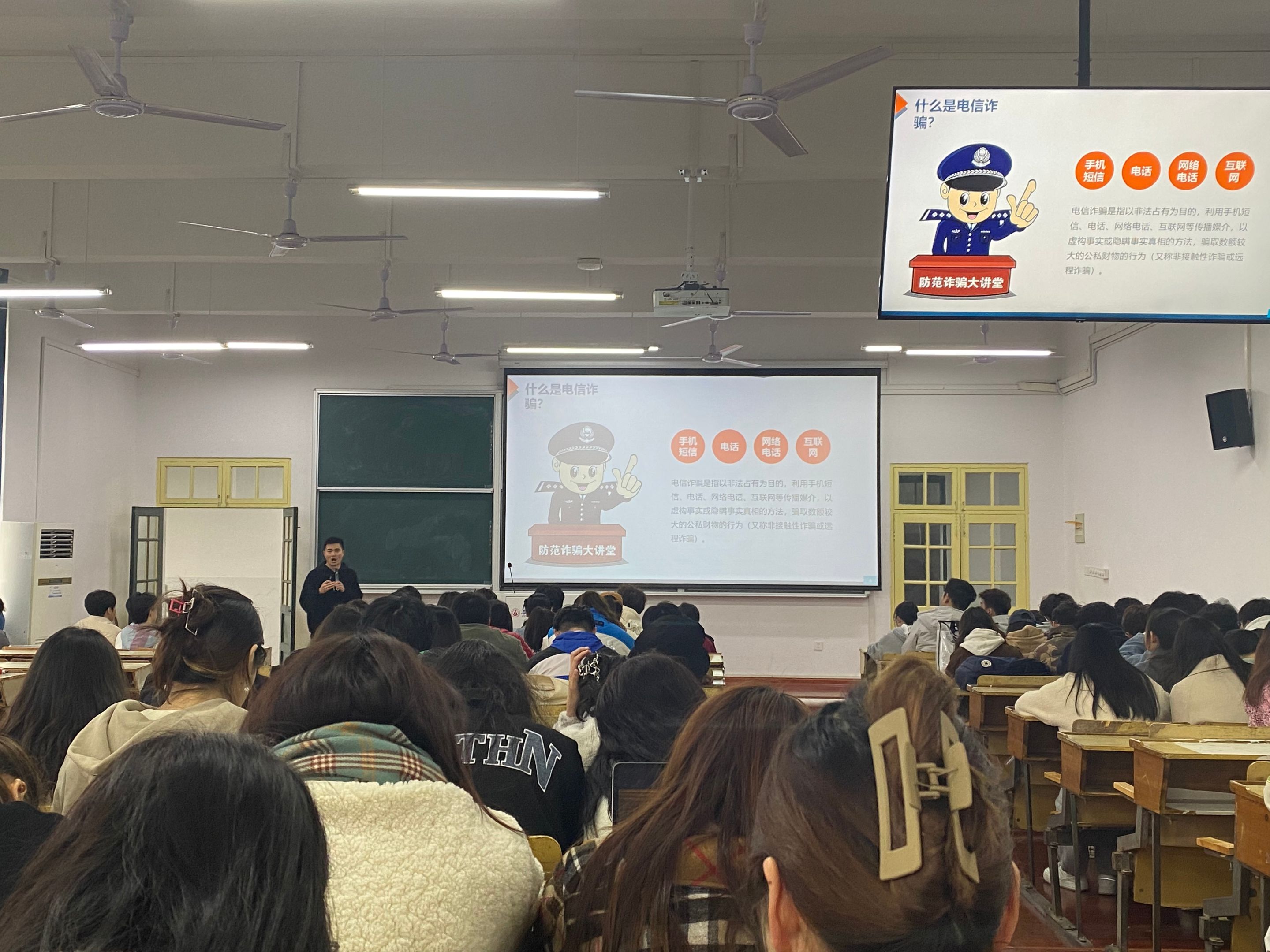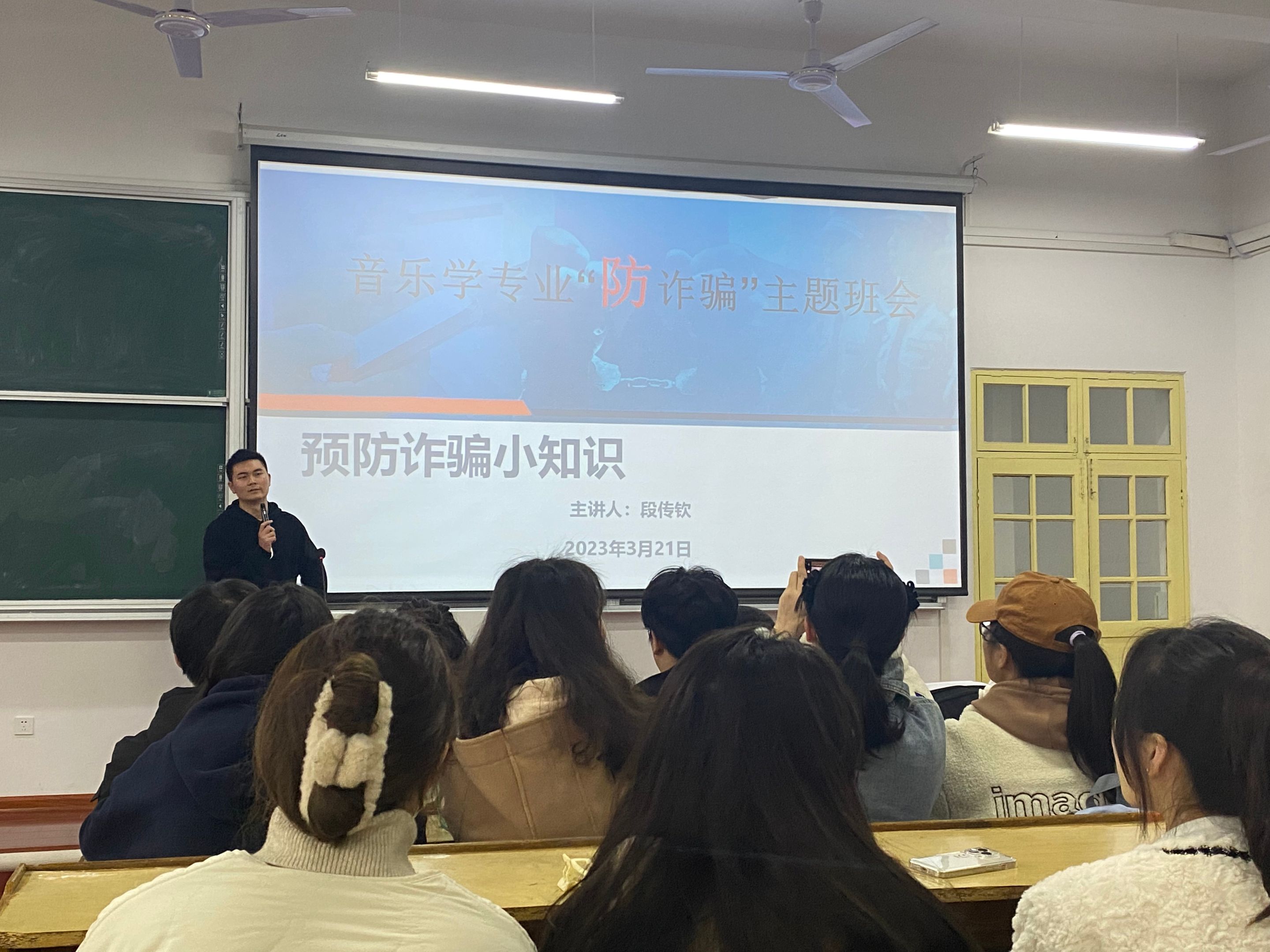 本次班会段传钦老师就“诈骗”的基本形式进行讲解,通过互动的方式向同学们揭示了“诈骗”的实质和惯用手段,并用身边发生的真实案例警示同学们要提高思想认识,谨防电信诈骗。